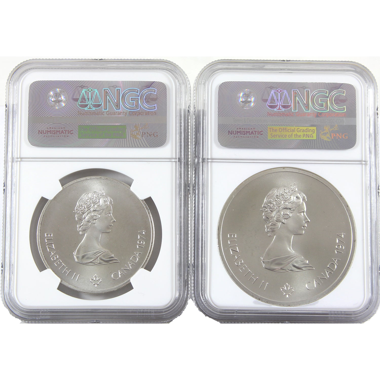 1974 Canada $5 and $10 Montreal Olympics Sterling Silver Coins NGC Cert. MS67
