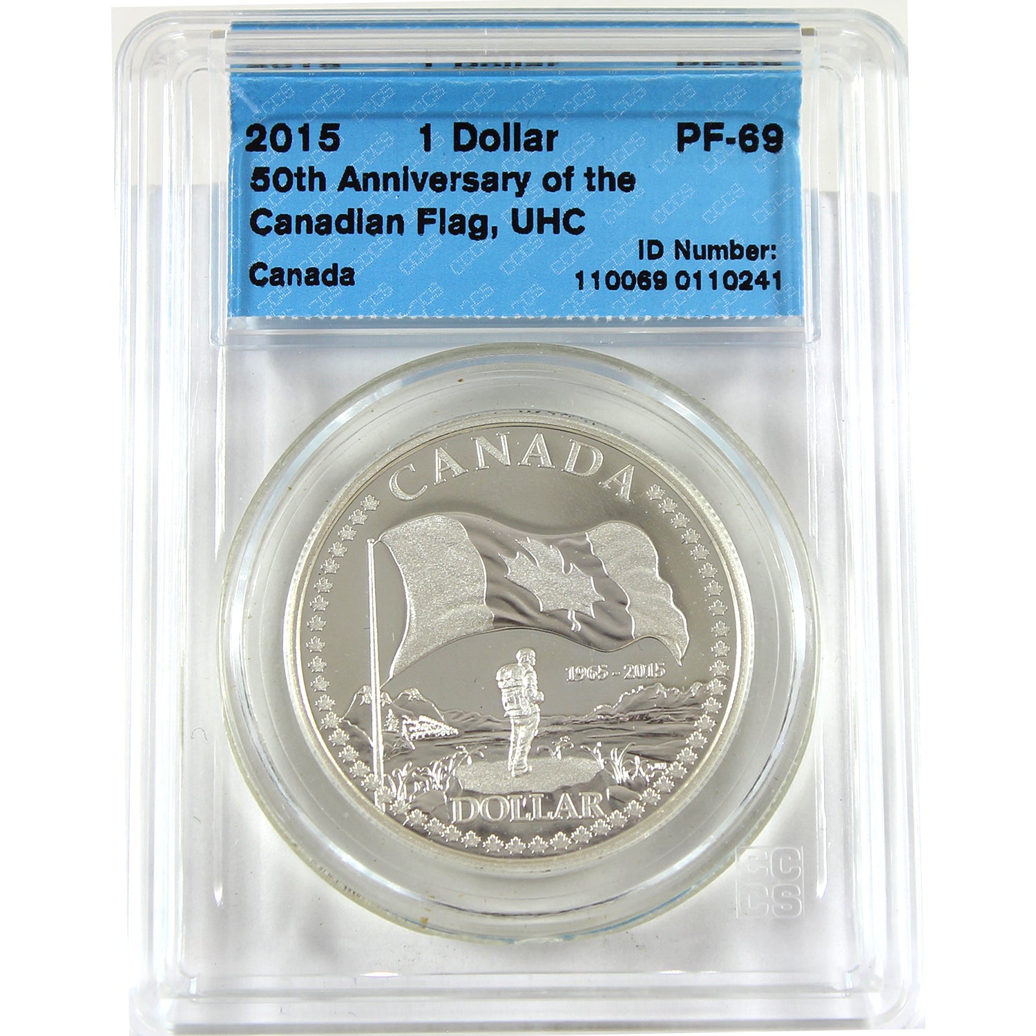 2015 50th Ann. of the Canadian Flag Proof Silver Dollar CCCS Cert. PF69 UHC (No Tax)