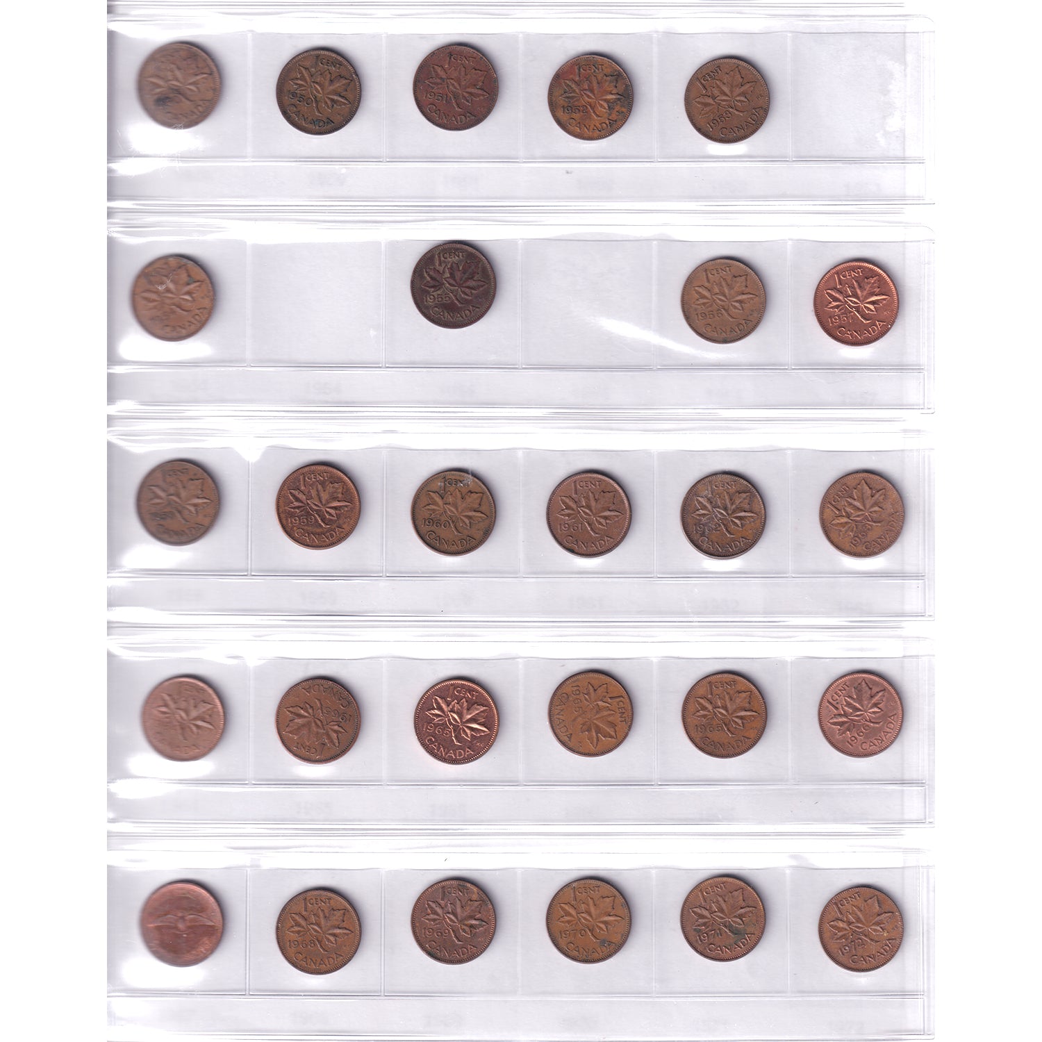 This collection features over 100 Canada 1-cent coins ranging from 1899 to 2011, all housed in a black album for easy storage and display.