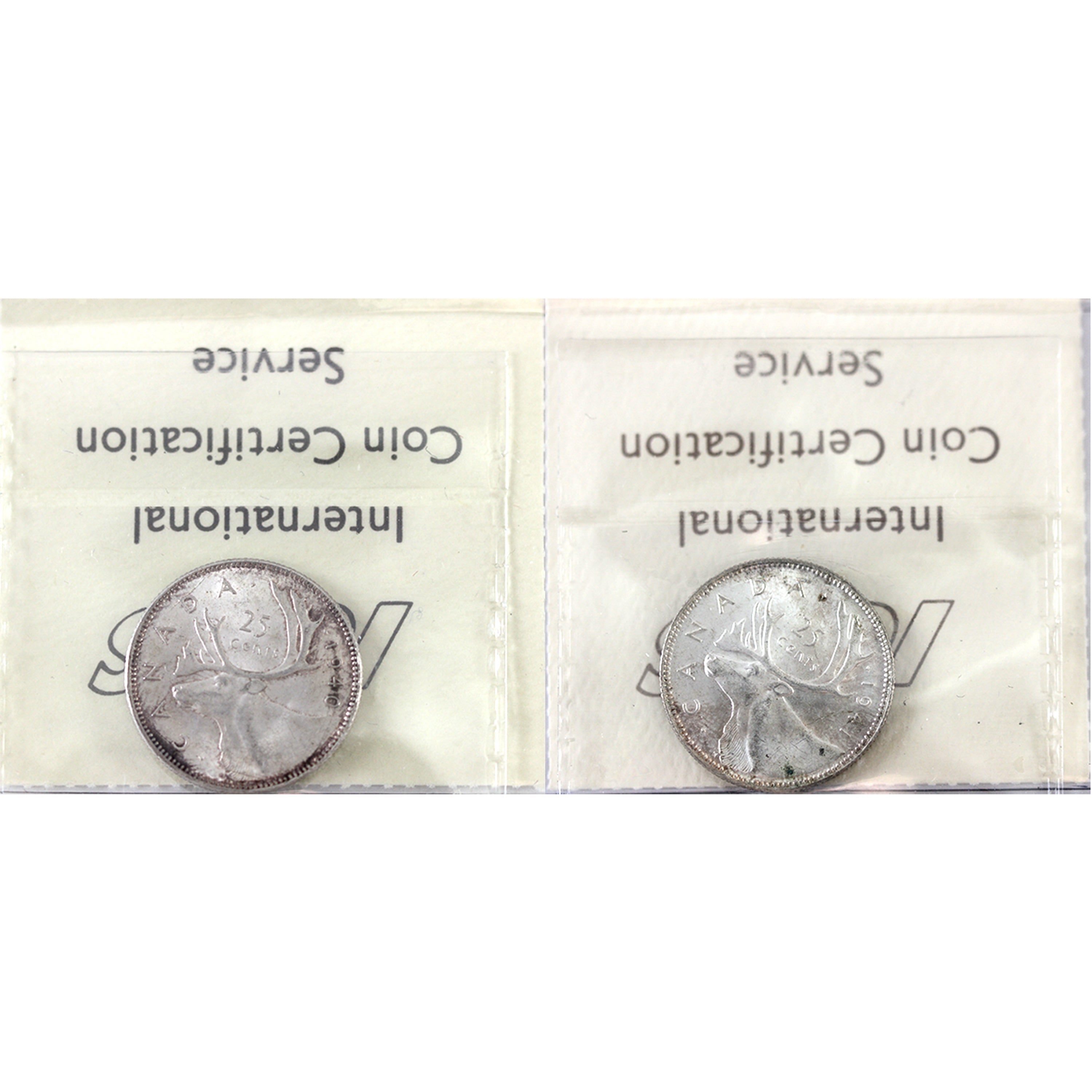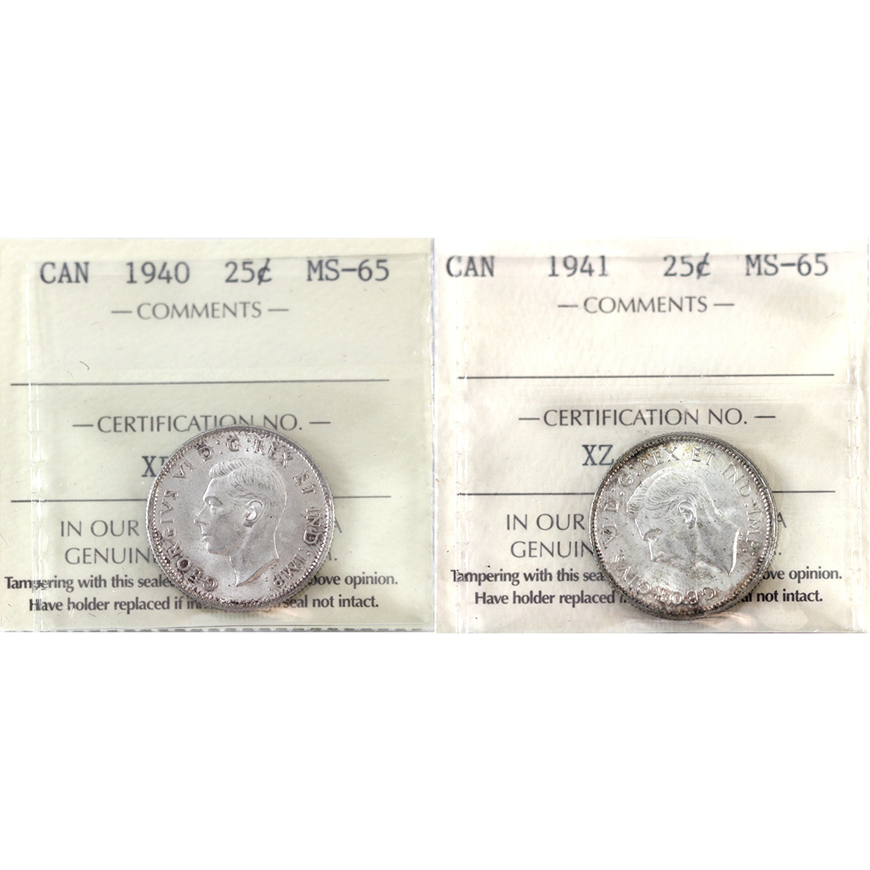 Pair of 1940 & 1941 Canada 25-cents ICCS Certified MS65 (2pcs)