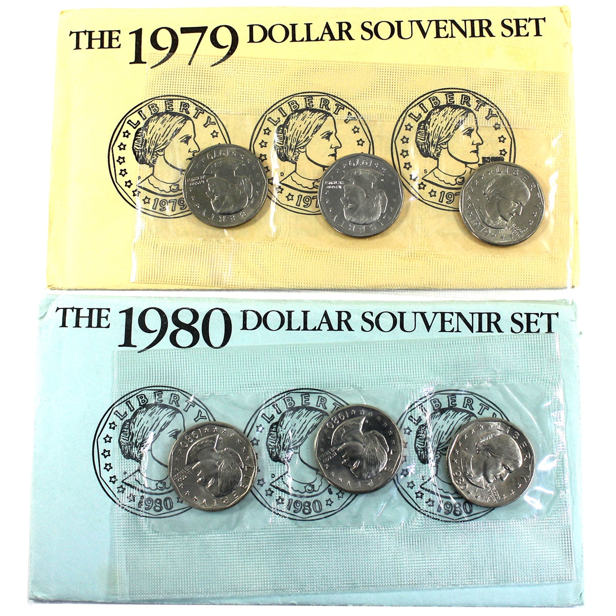 Pair of 1979 & 1980 PDS USA Susan B. Anthony Dollar 3-coin Souvenir Sets