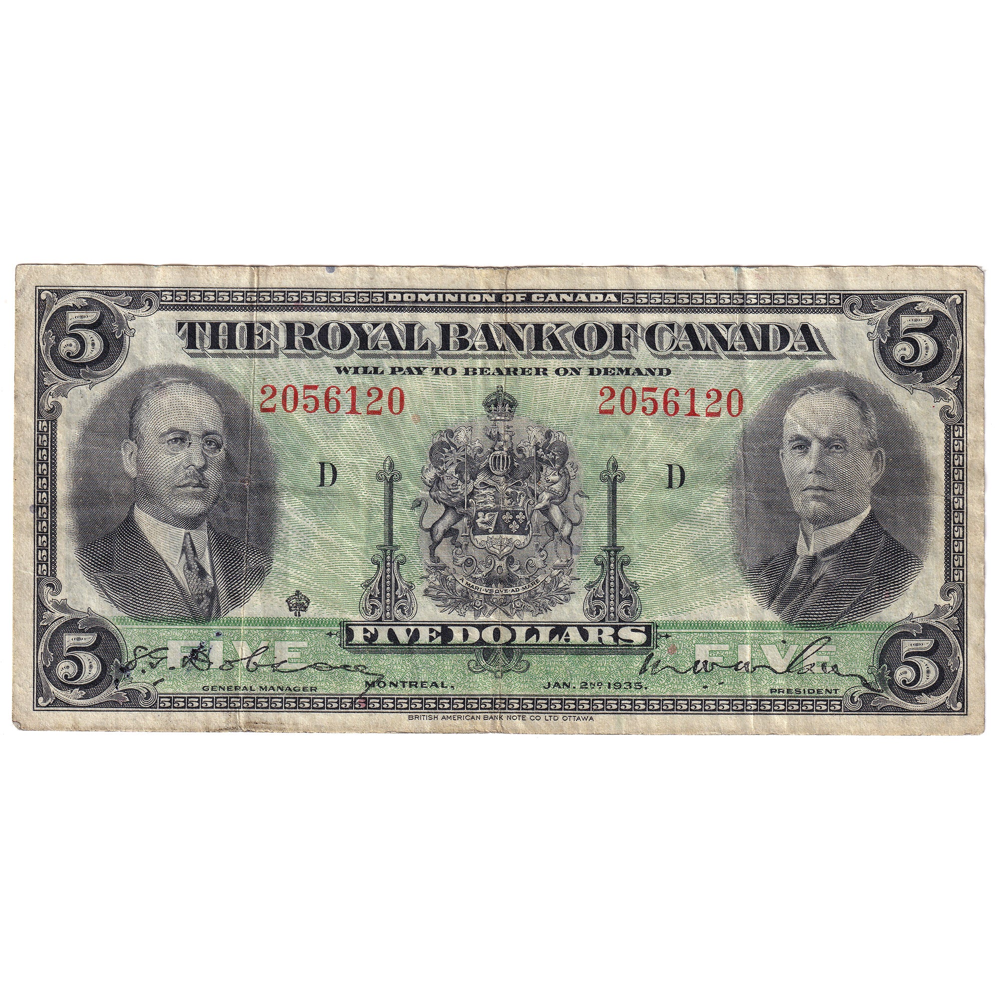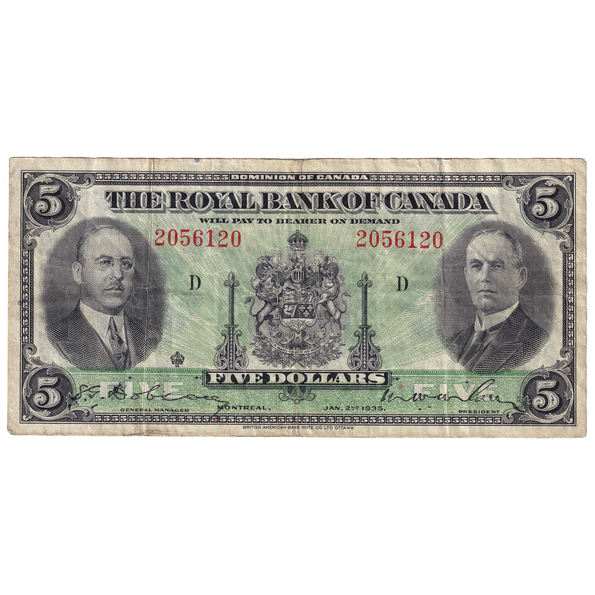 630-18-02a 1935 Royal Bank of Canada $5 Dobson-Wilson, Large Signatures, VF