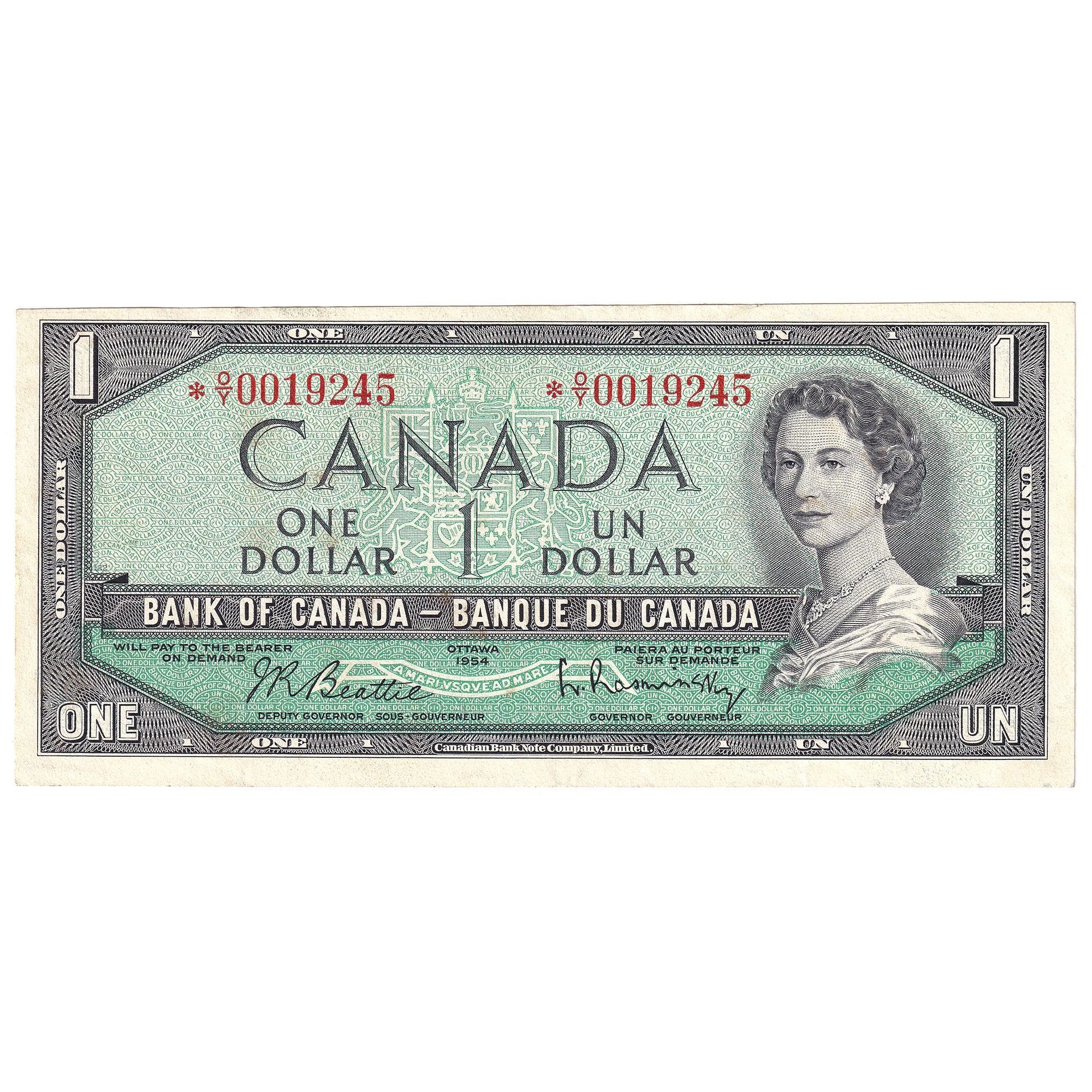 BC-37bA 1954 Canada $1 Beattie-Rasminsky, *O/Y, EF