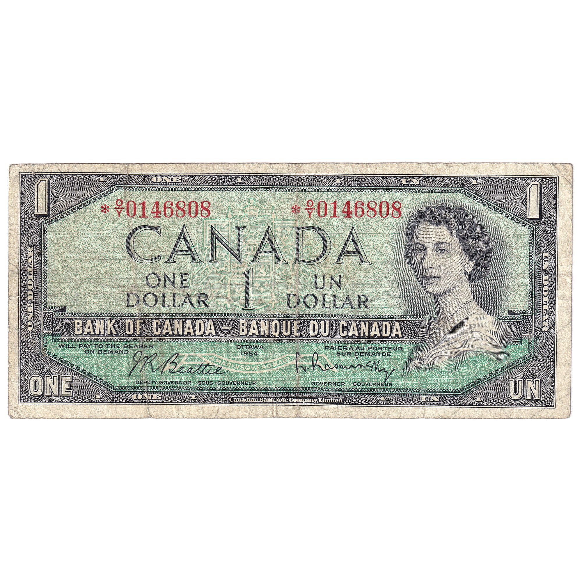BC-37bA 1954 Canada $1 Beattie-Rasminsky, *O/Y, F-VF