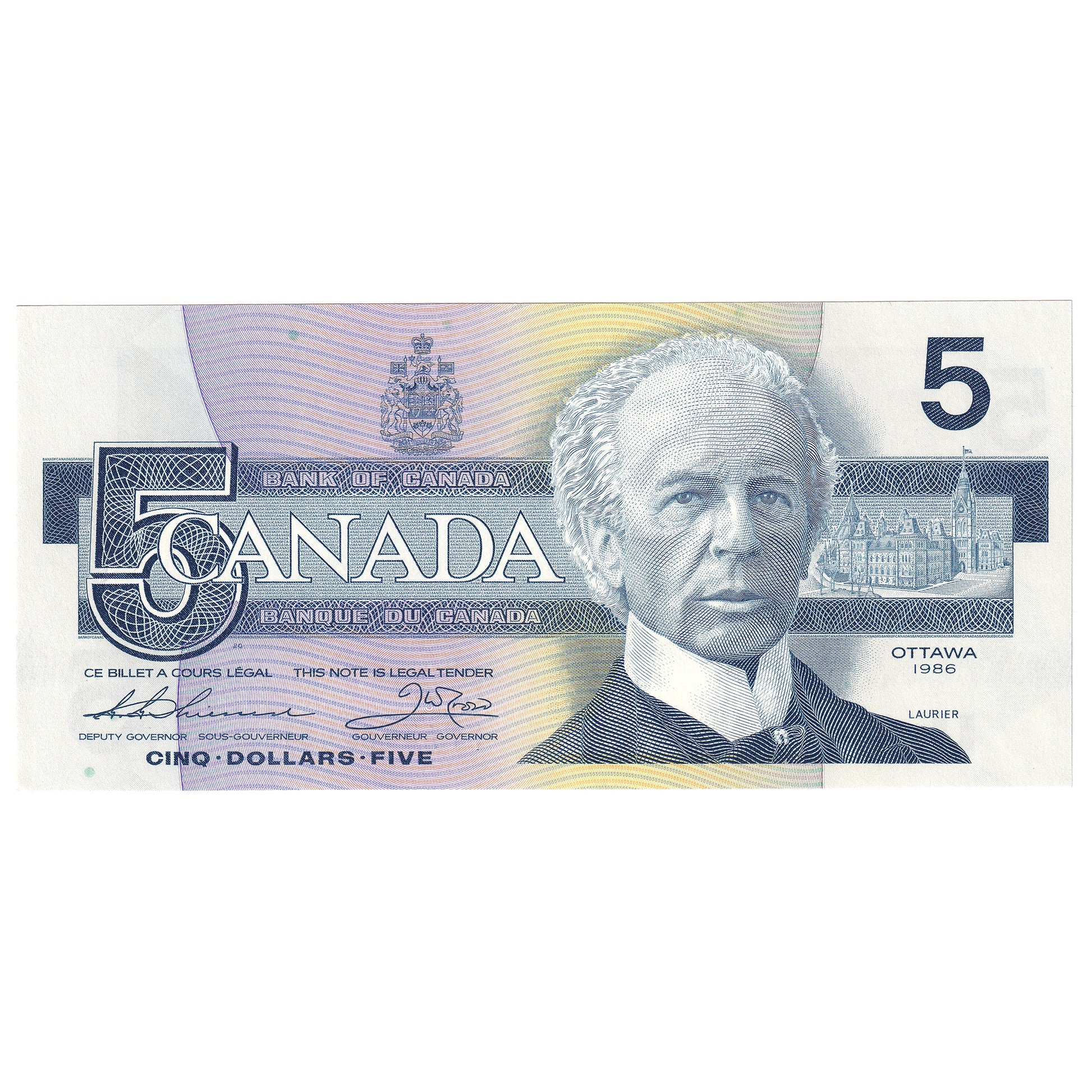 BC-56b 1986 Canada $5 Thiessen-Crow, FPA, AU-UNC