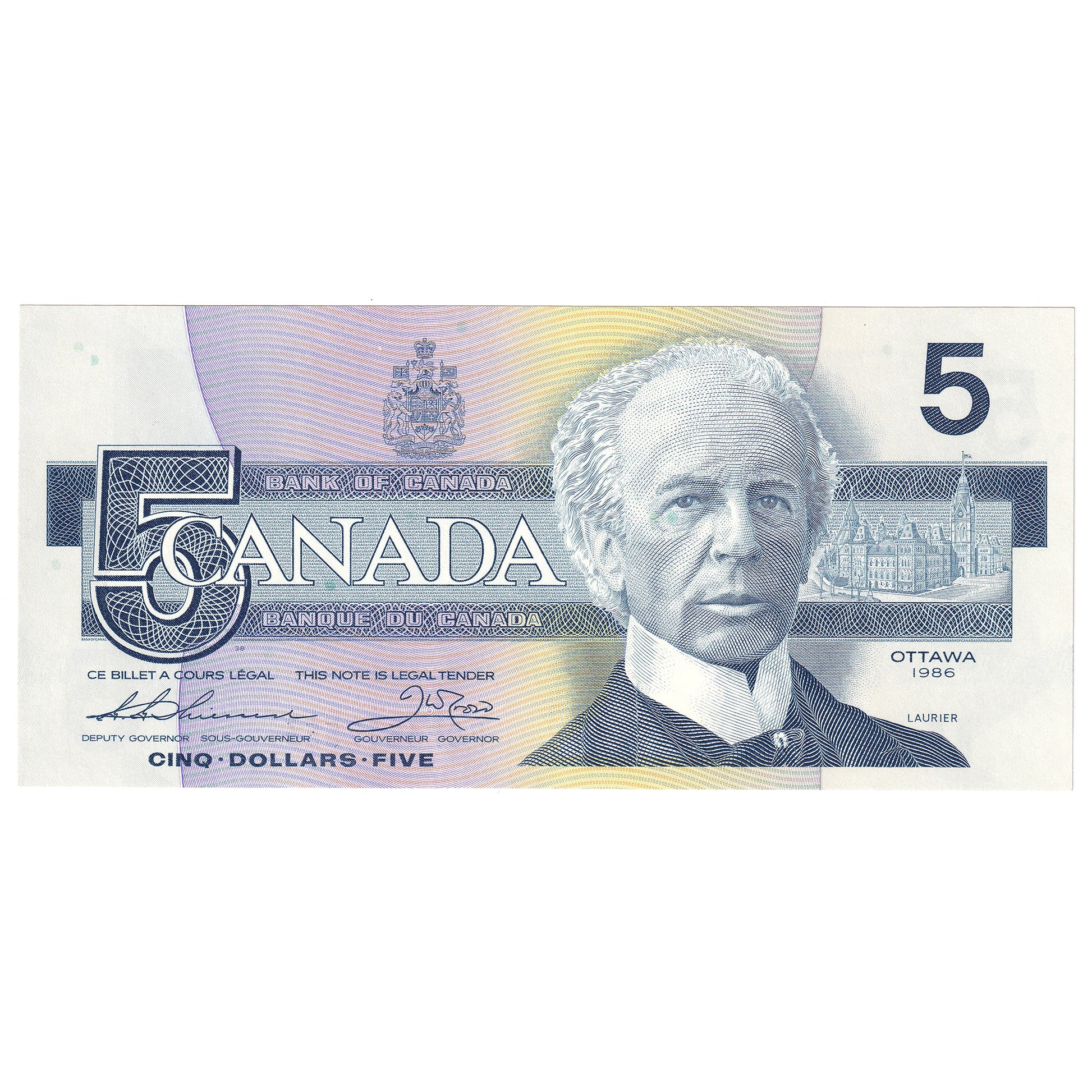 BC-56b 1986 Canada $5 Thiessen-Crow, FOP, AU-UNC