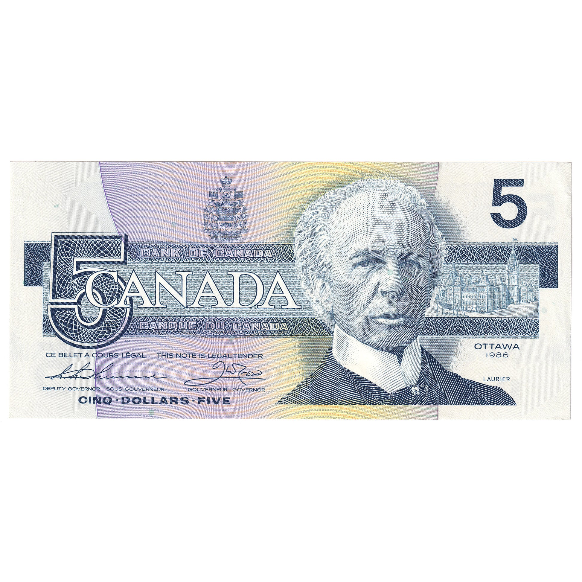 BC-56b 1986 Canada $5 Thiessen-Crow, GNG, AU-UNC