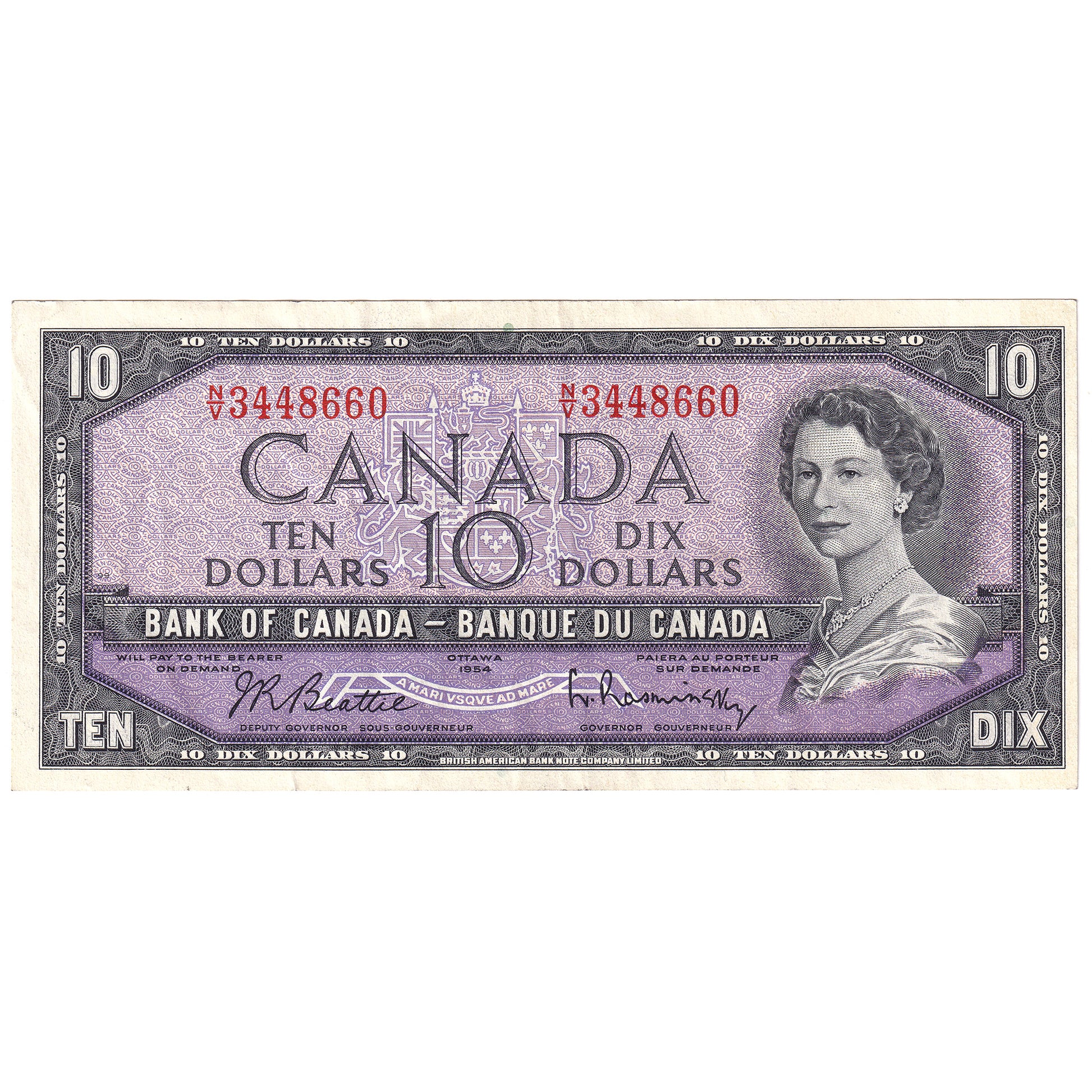 BC-40b 1954 Canada $10 Beattie-Rasminsky, N/V, VF-EF