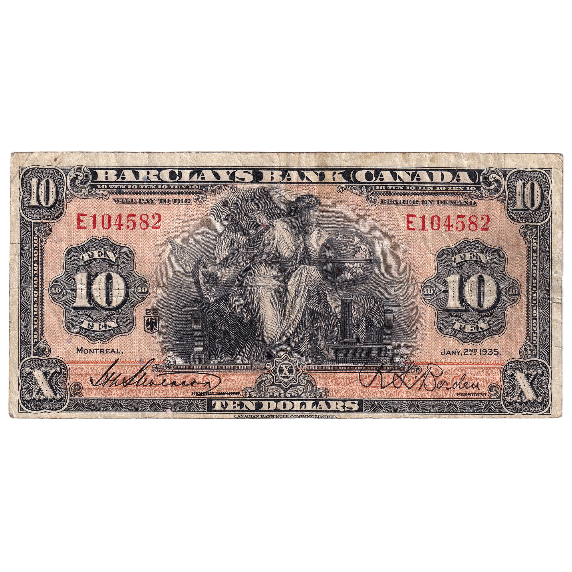 30-12-06 1935 Barclay's Bank Canada $10 Stevenson-Borden, F-VF
