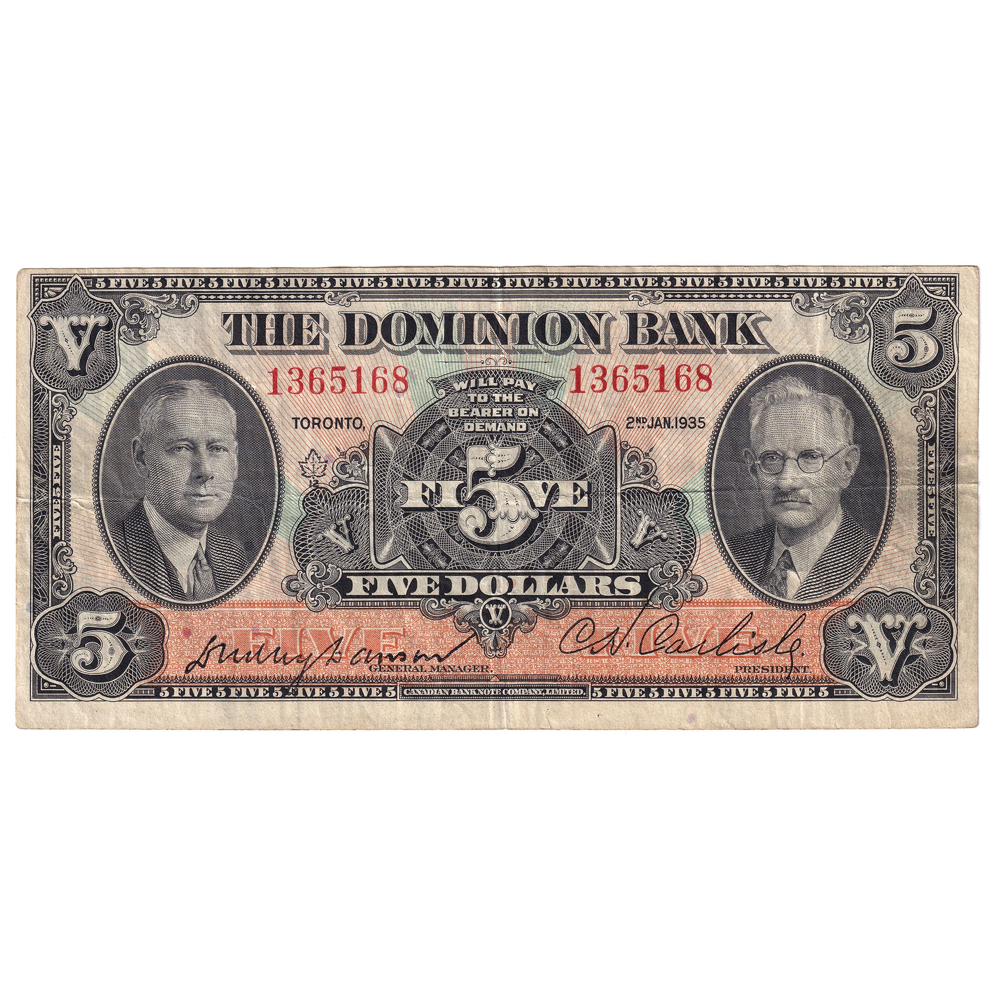 220-26-02 1935 Dominion Bank $5 Dawson-Carlisle, VF