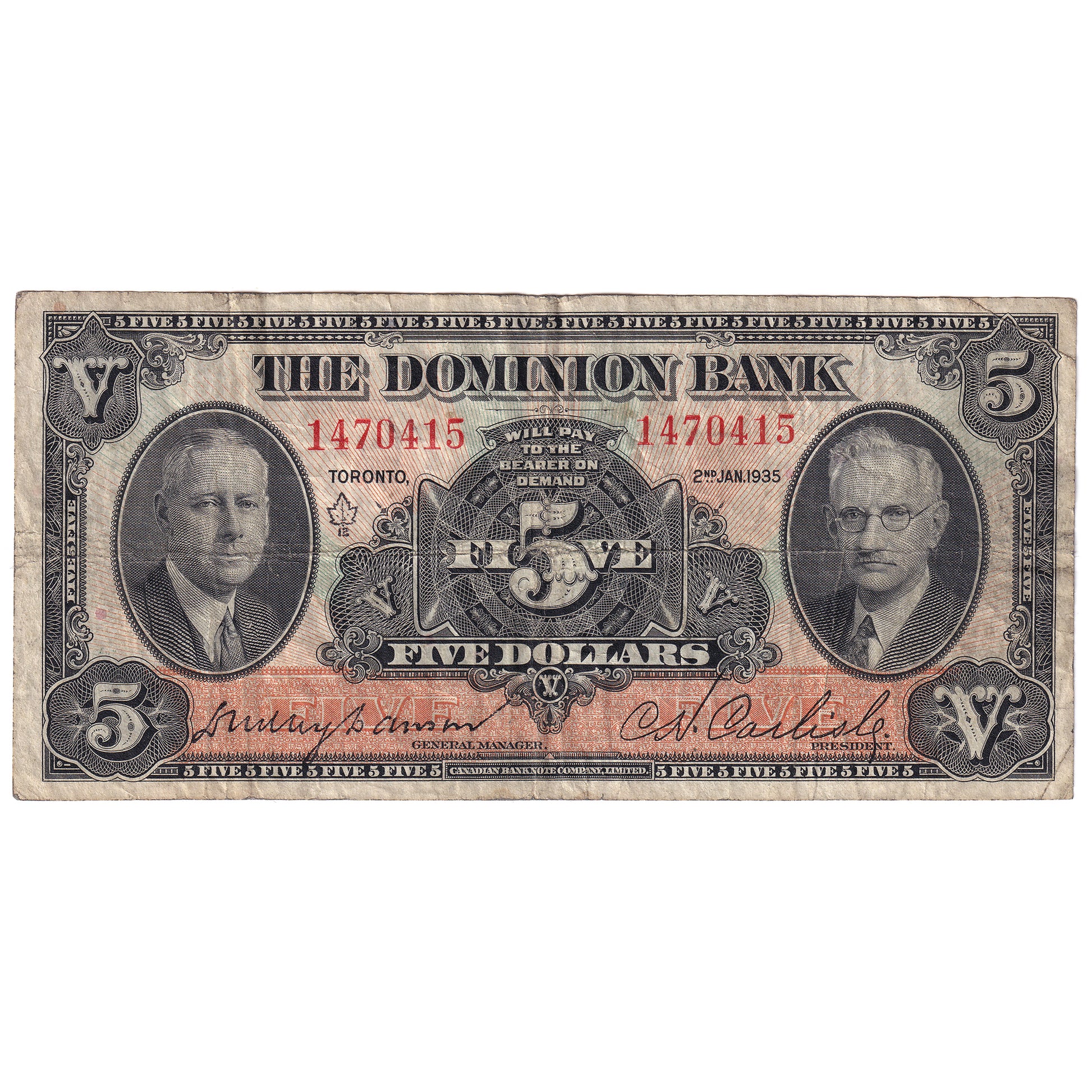220-26-02 1935 Dominion Bank $5 Dawson-Carlisle, F-VF