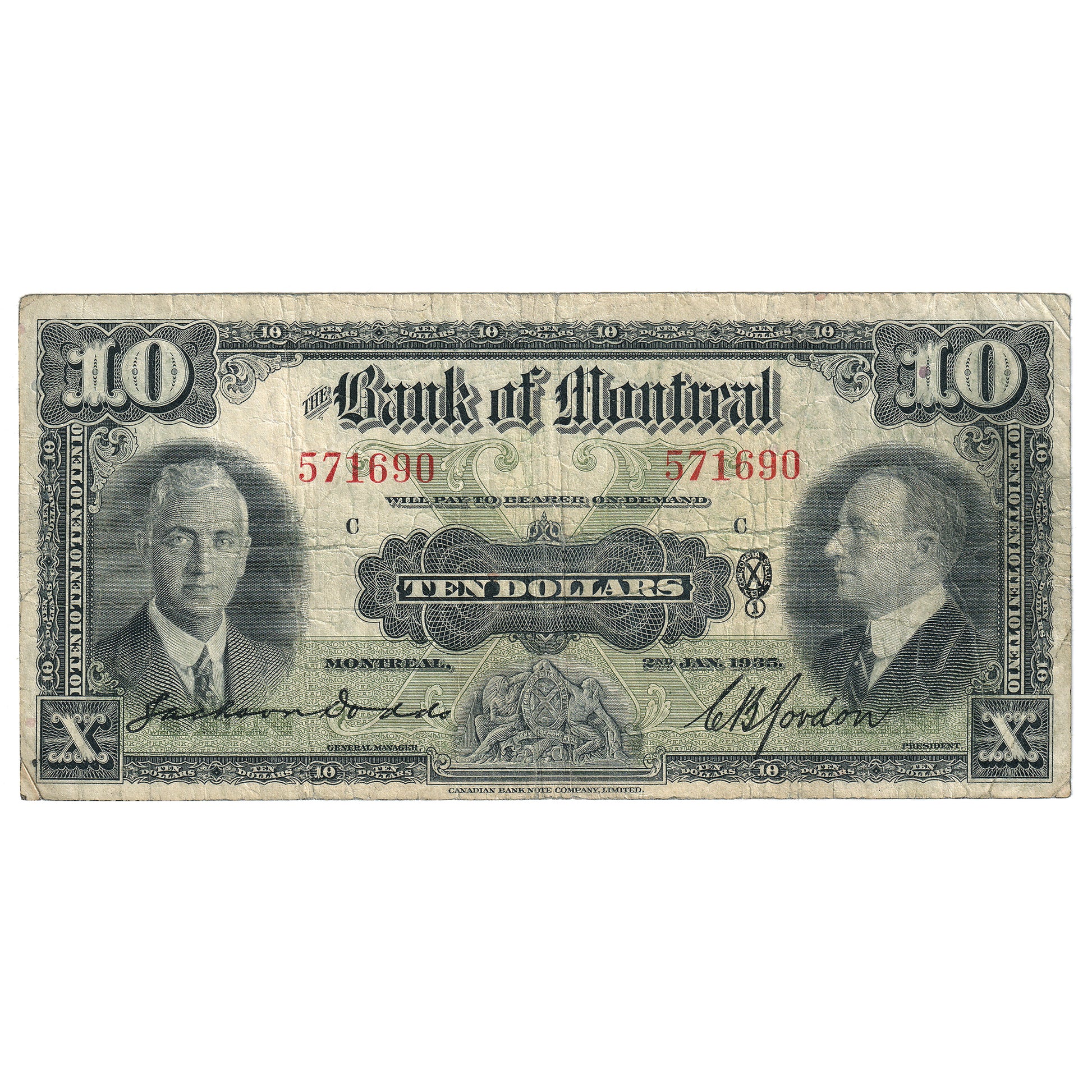 505-60-04 1935 Bank of Montreal $10 Dodds-Gordon, VG-F