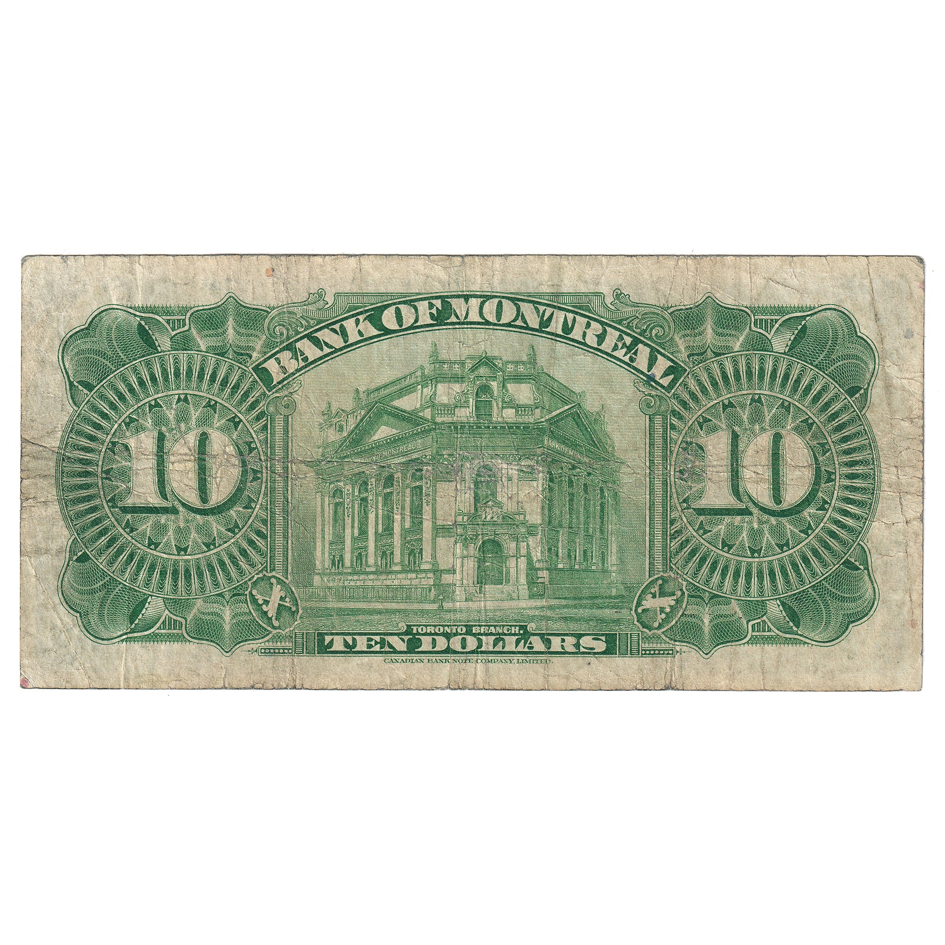 Back Design: Lathework, counters, bank name and Toronto branch of the Bank of Montreal (now the Hockey Hall of Fame).
