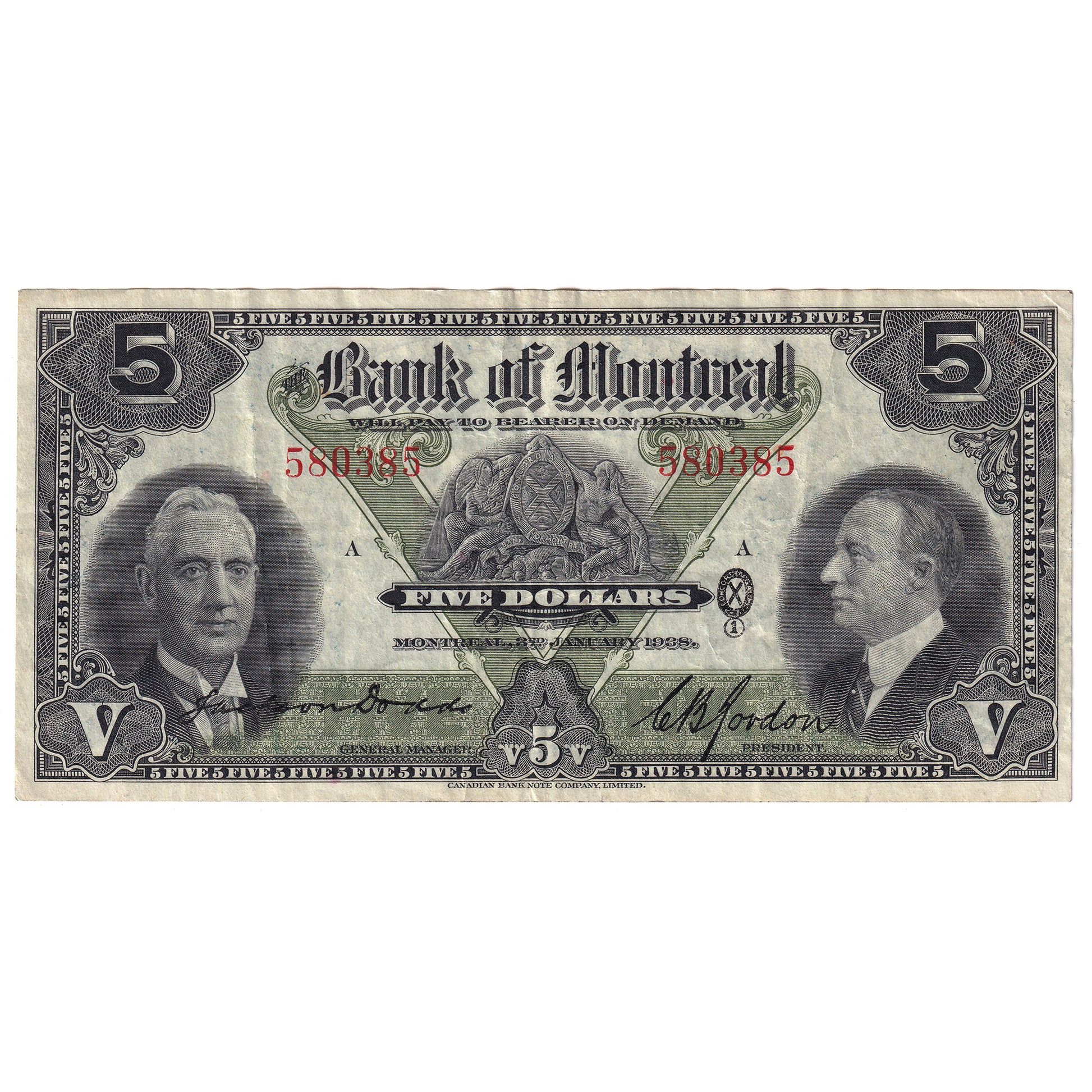 505-62-02 1938 Bank of Montreal $5 Dodds-Gordon, VF-EF