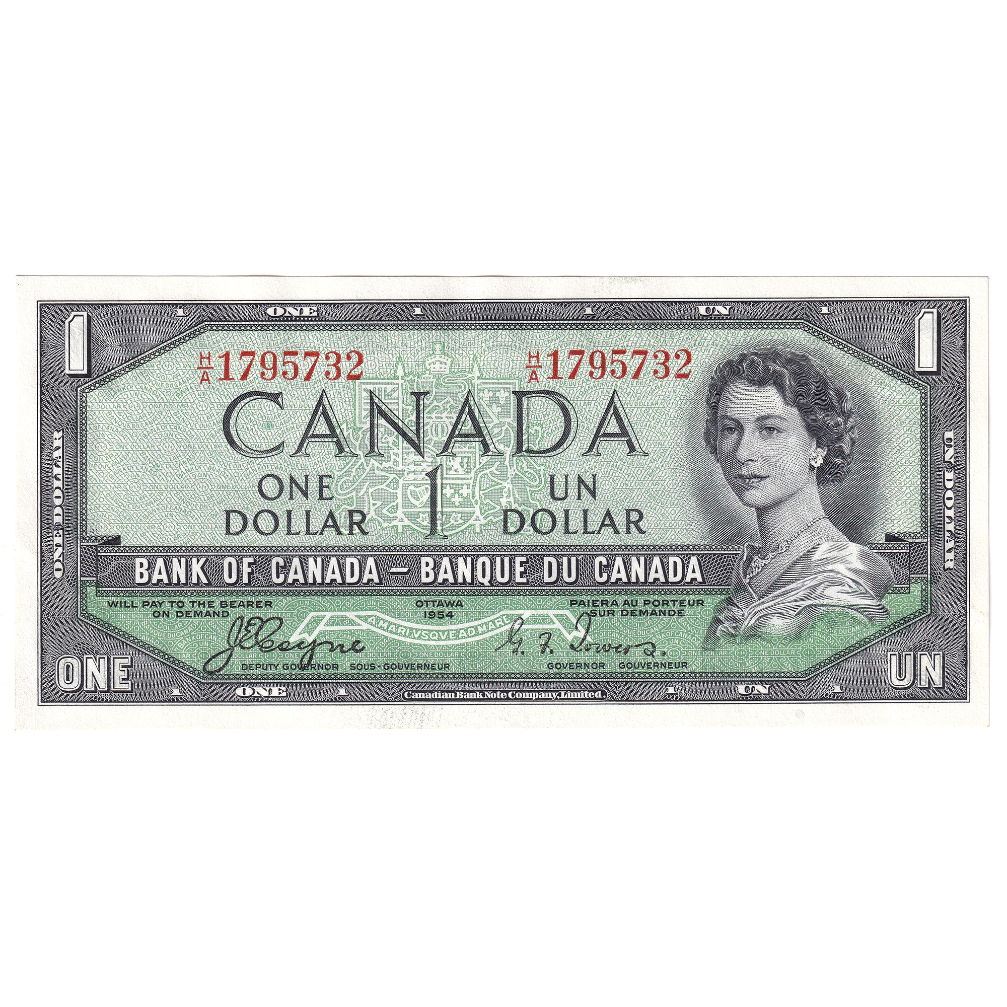 BC-29a 1954 Canada $1 Coyne-Towers, Devil's Face, H/A, UNC