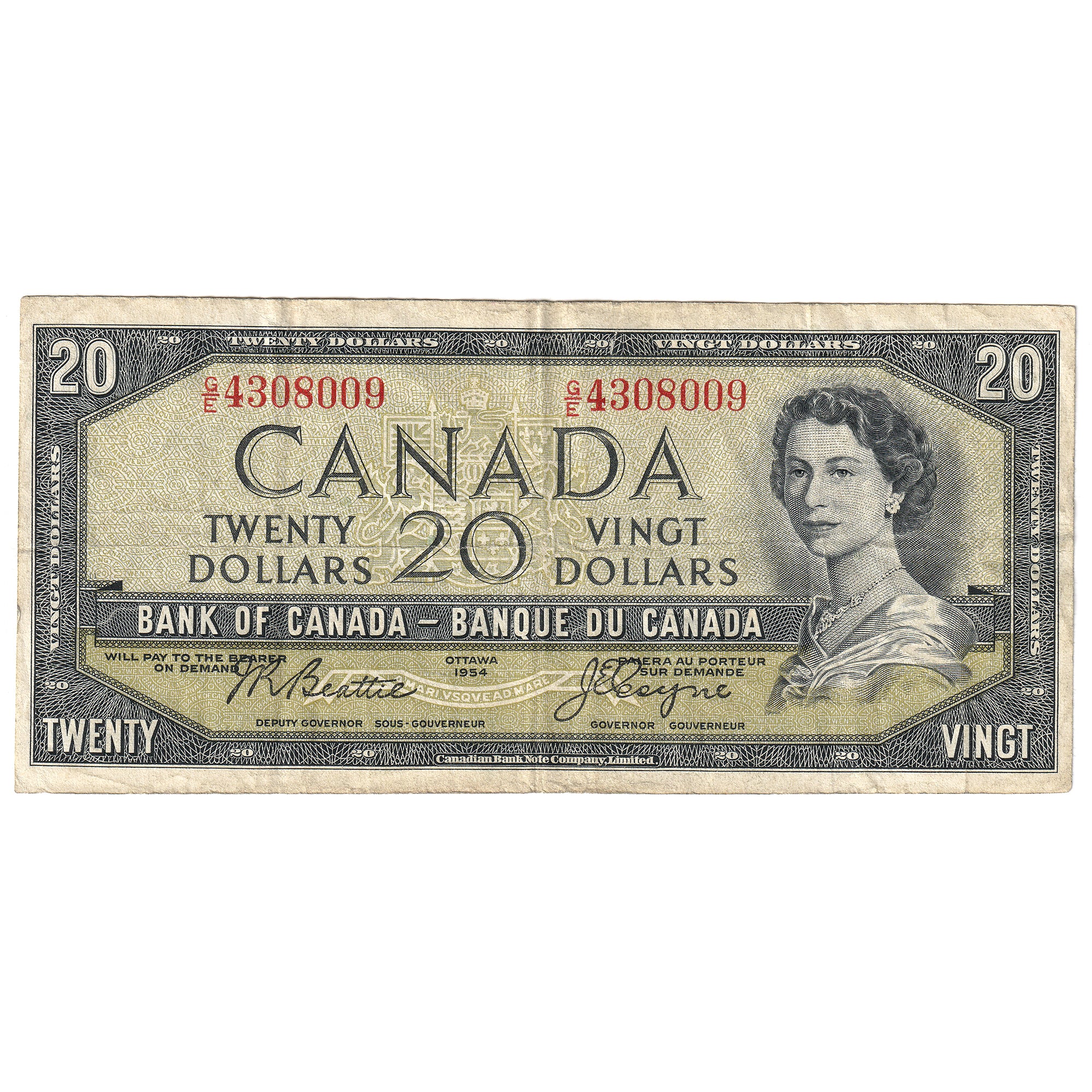 BC-33b 1954 Canada $20 Beattie-Coyne, Devil's Face, G/E, Circ