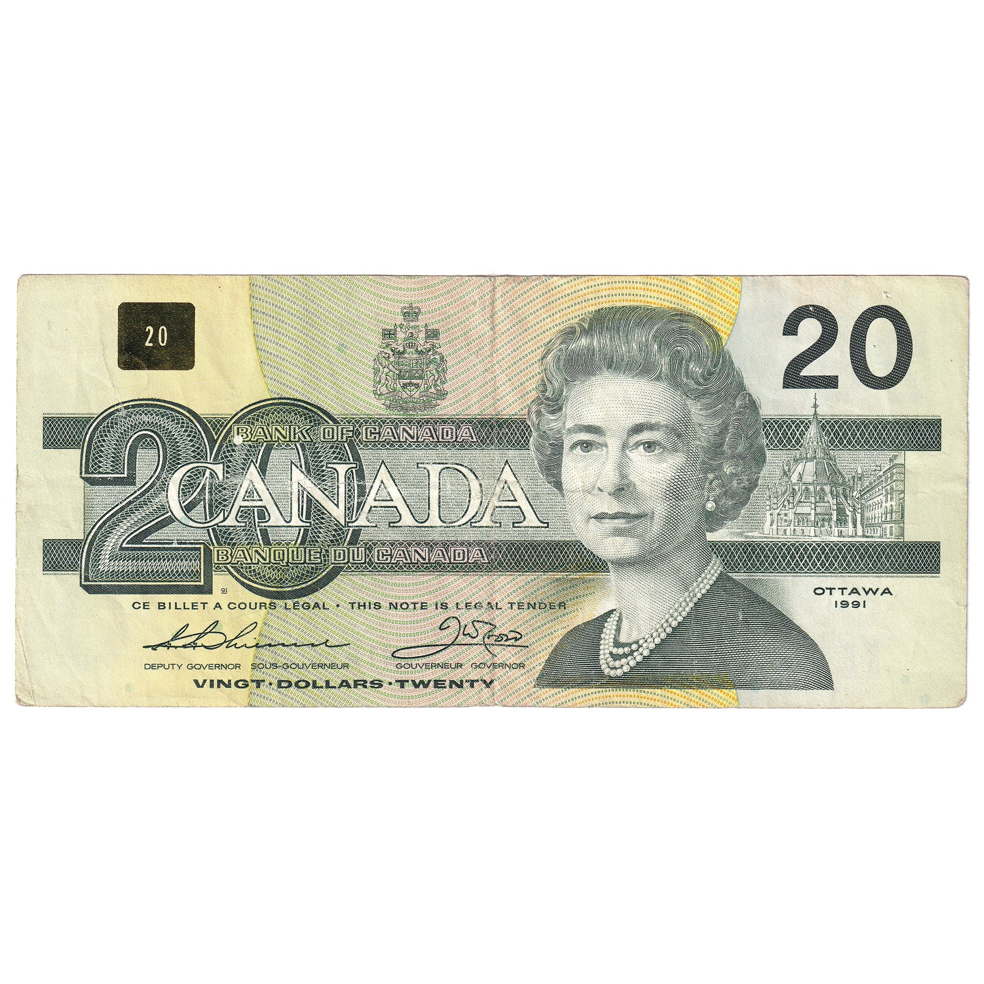 BC-58a-ii 1991 Canada $20 Thiessen-Crow, AIW w/o Serifs, Circ