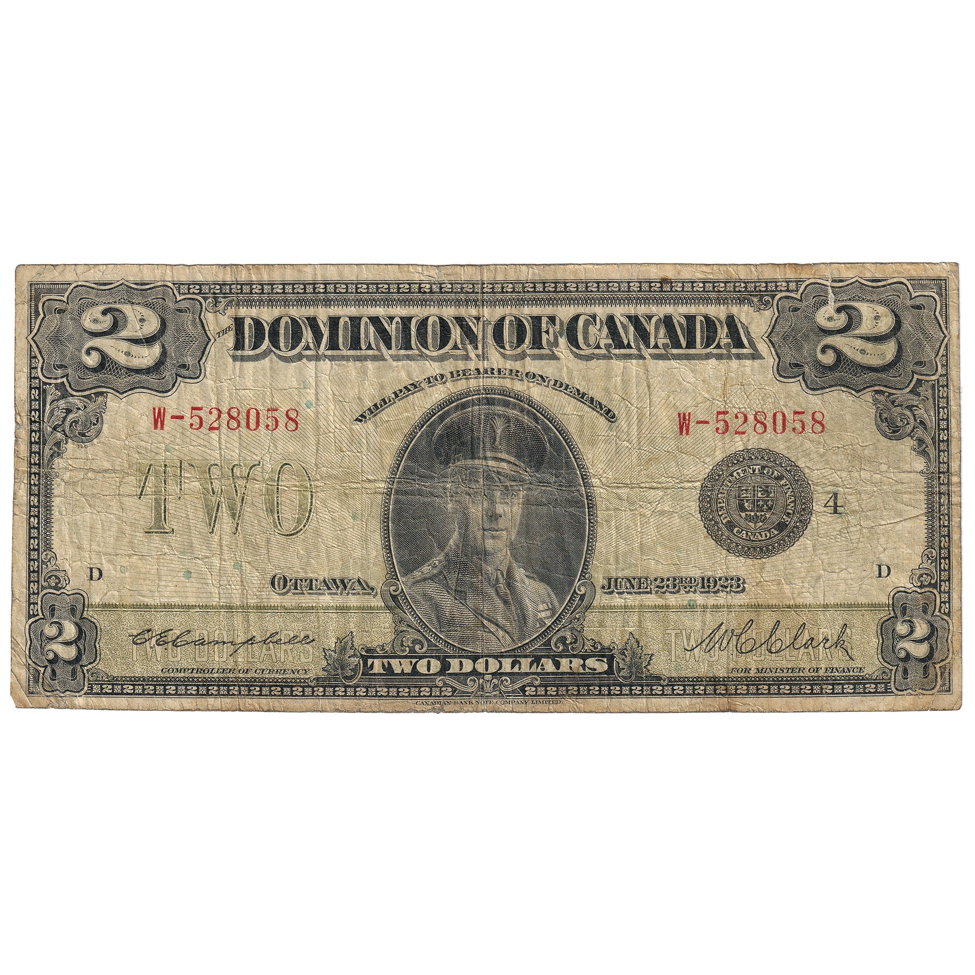 DC-26l 1923 Dominion of Canada $2 Campbell-Clark, Black Seal, Group 4, Series W, F