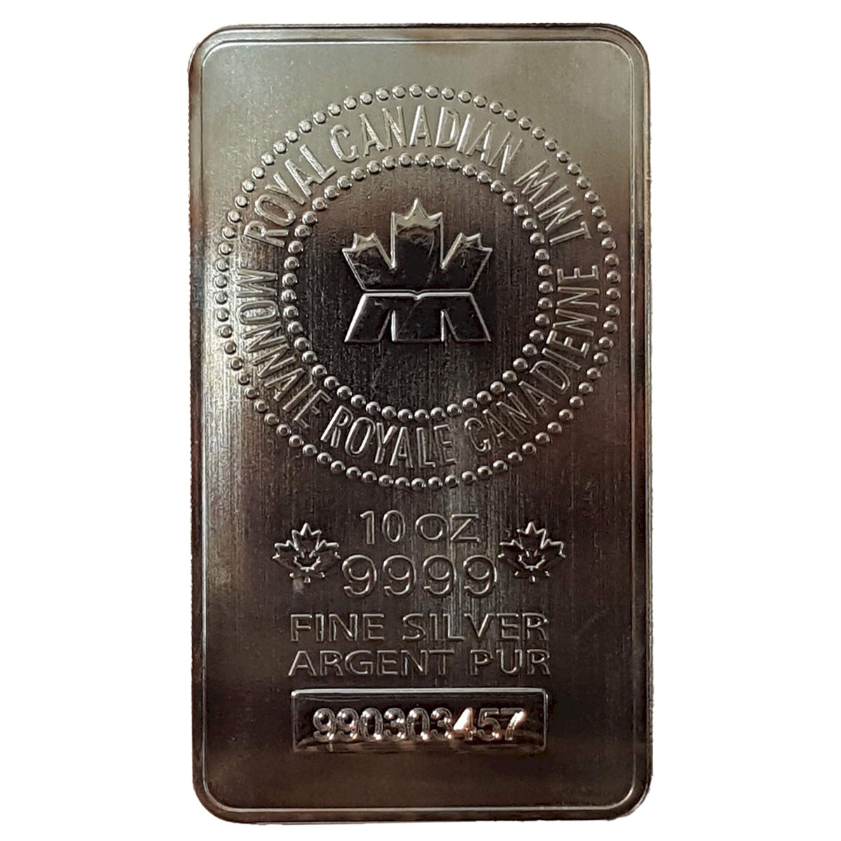RCM 10oz. 999 Fine Silver Bar (TAX Exempt) Unsealed/Lightly toned