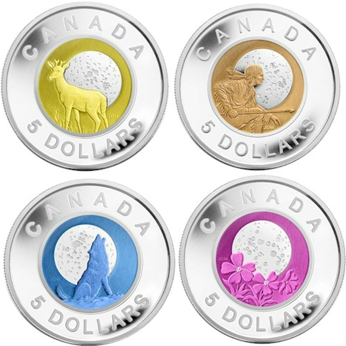 RDC 2011-2012 Canada $5 Full Moons Sterling Silver & Niobium 4-coin Set (impaired)