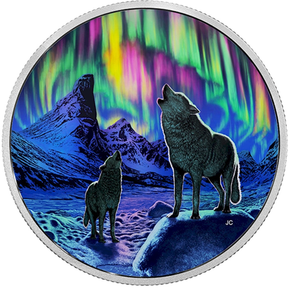 In Canada's far-northern latitudes, where solitude and beauty often meet, nature takes centre stage with a celestial light show that once seen, cannot be forgotten. Using innovative glow-in-the-dark technology, the spellbinding qualities of the aurora borealis are beautifully recreated on this coloured coin that captures the look and feel of a luminous winter night in the wilds of Canada's Arctic region.