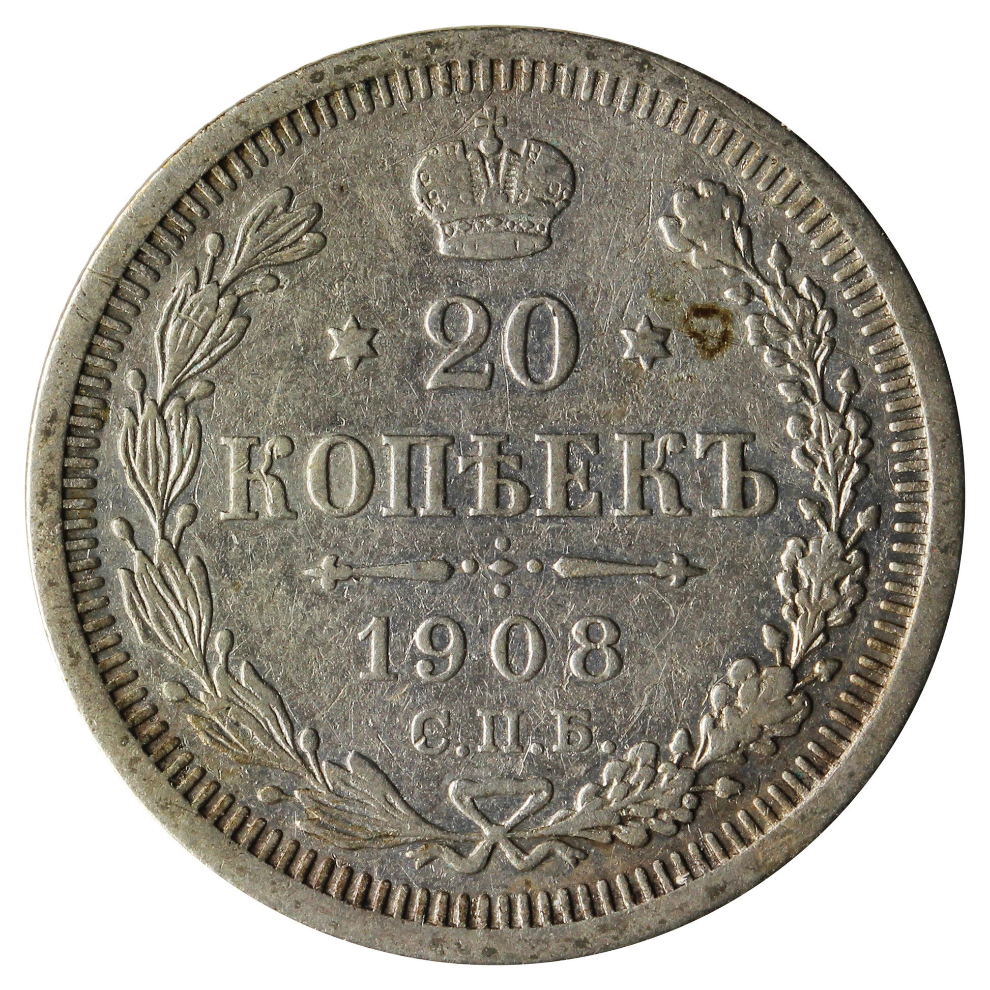 Russia 1908 20 Kopeks Extra Fine (EF40)