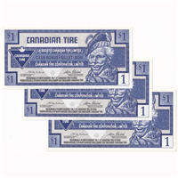 S20-Fa-20 Replacement 1996 Canadian Tire Coupon $1.00 Uncirculated (3 Notes)