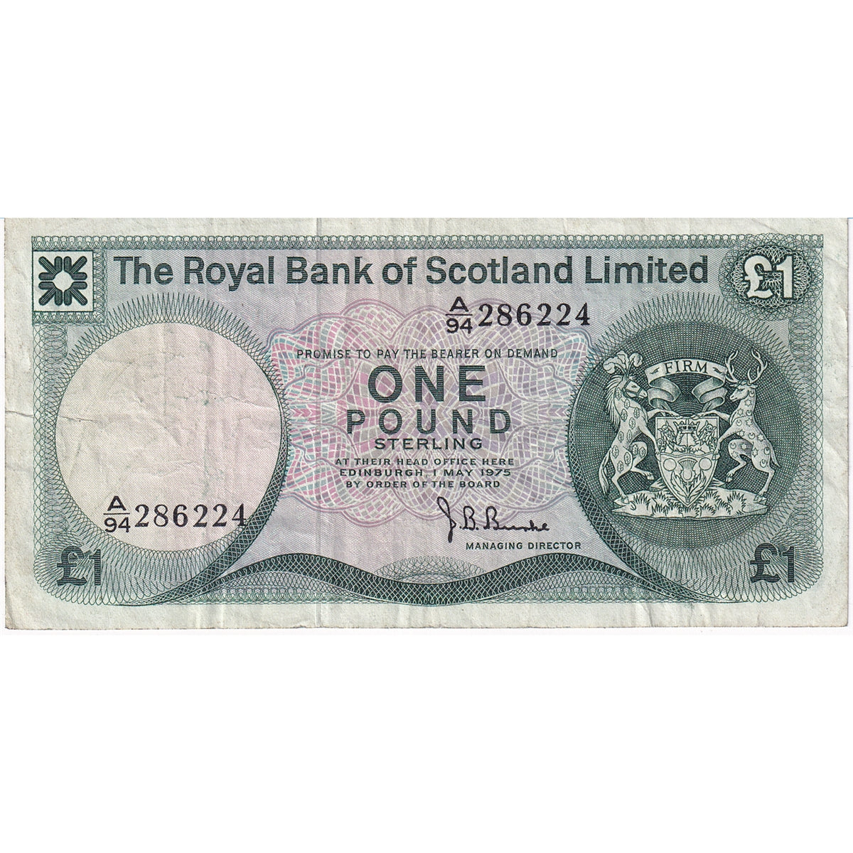 Scotland 1975 Royal Bank of Scotland 1 Pound Note, Pick 336a, VF
