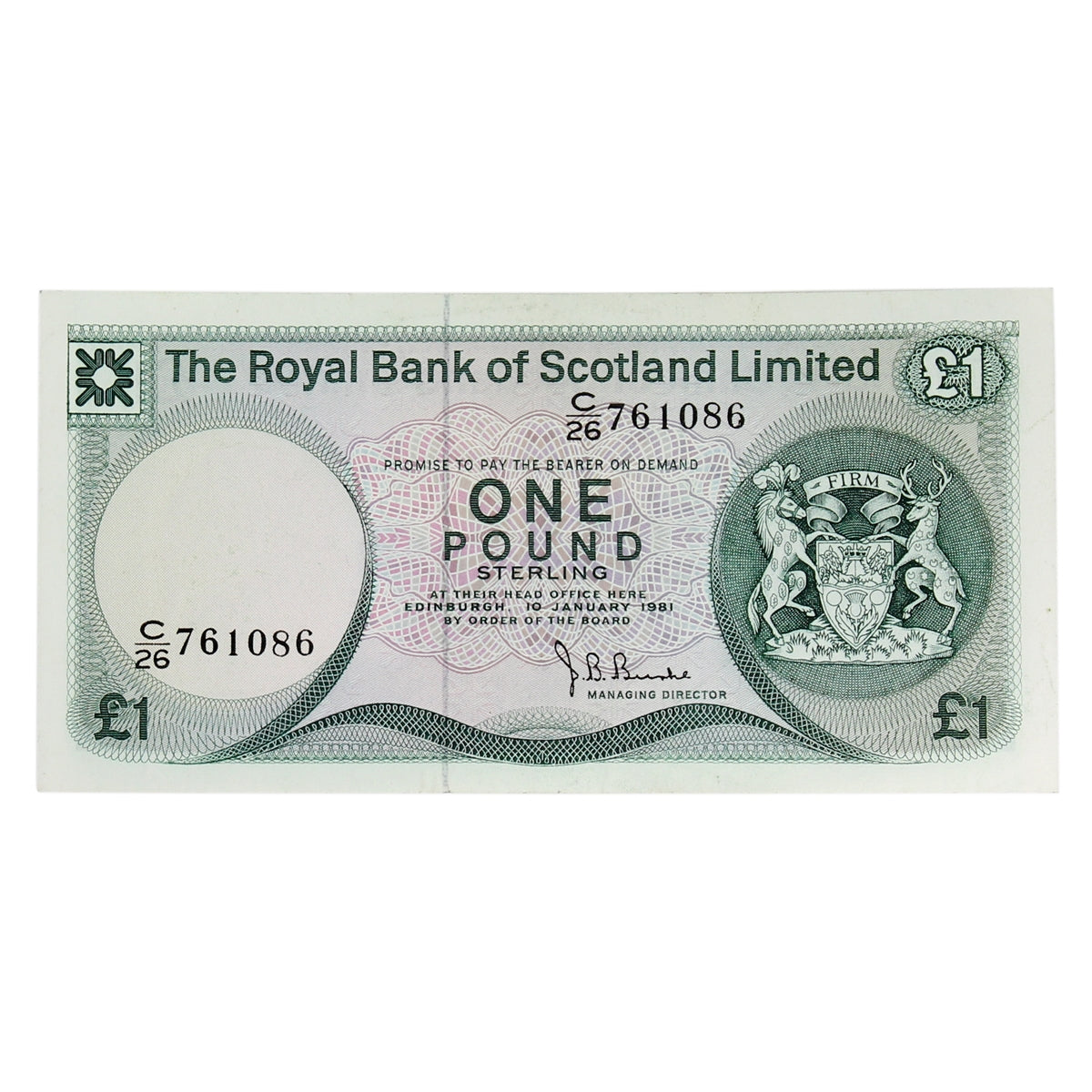 Scotland 1981 Royal Bank of Scotland 1 Pound Note, SC815, AU