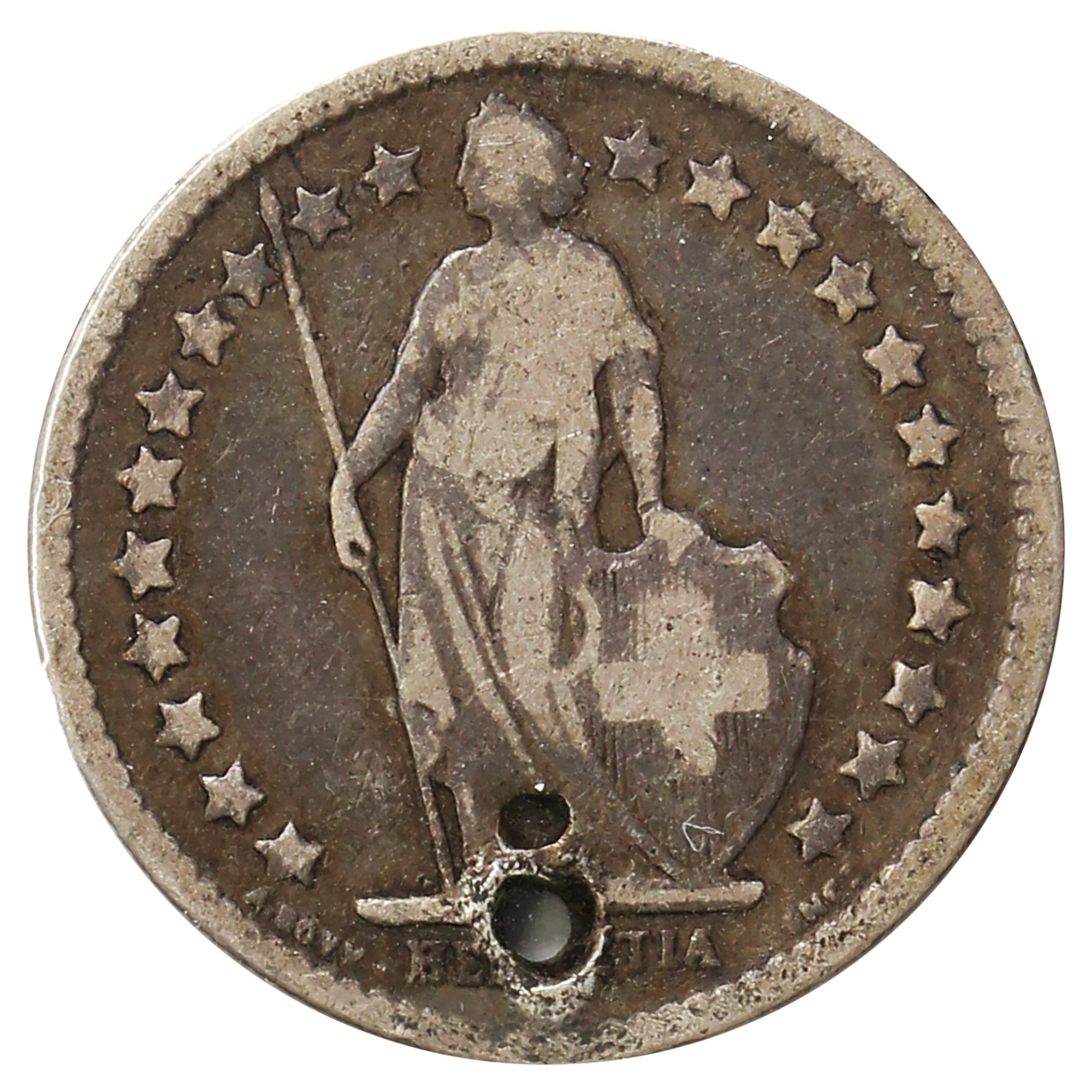 Switzerland 1875B 1/2 Franc VF-EF (VF30) Hole