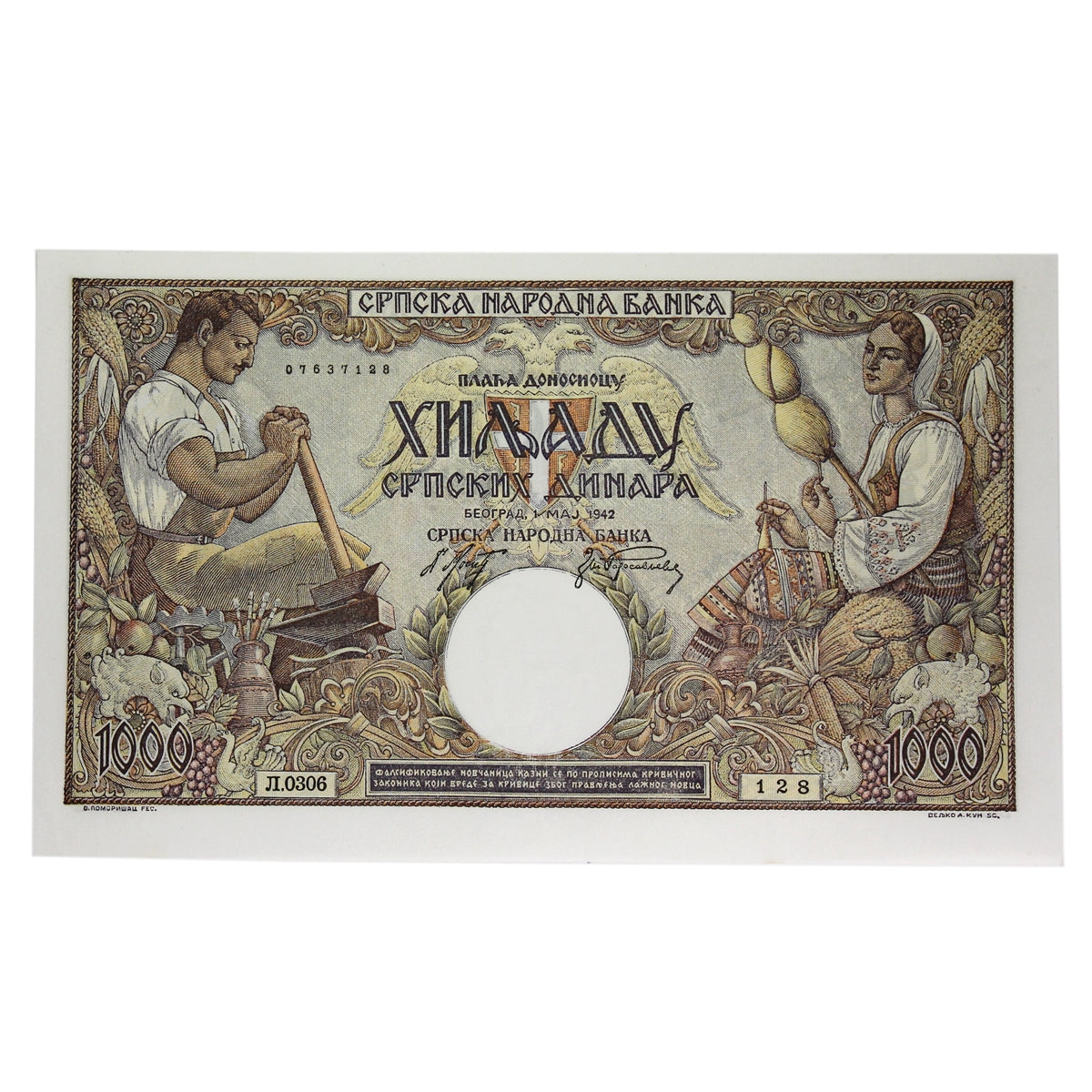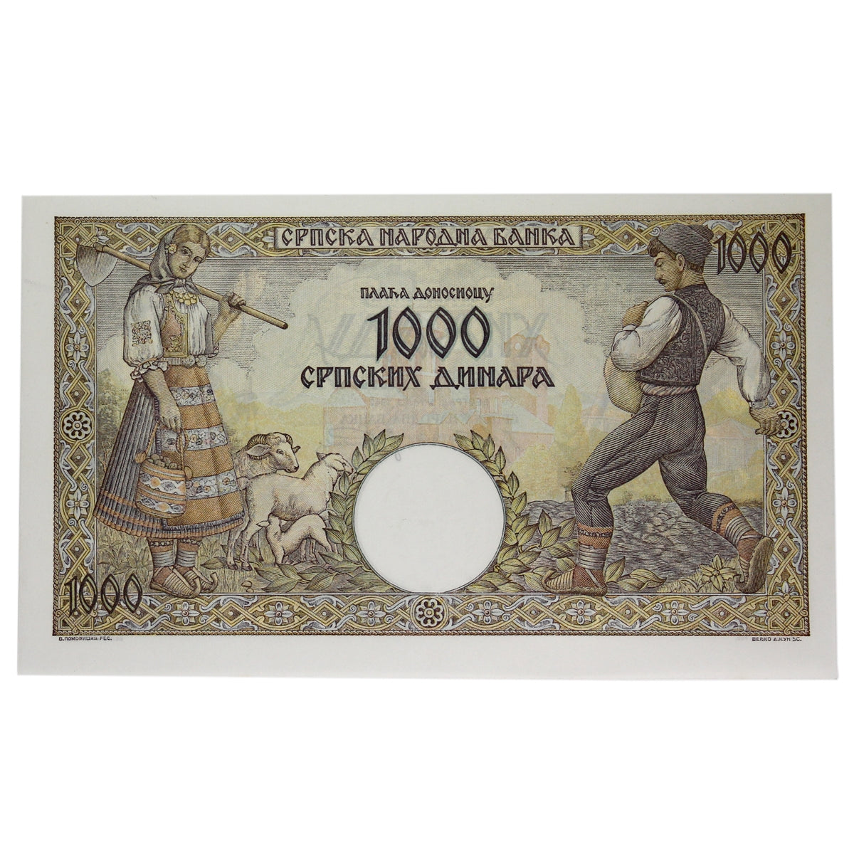 Serbia 1942 1,000 Dinara Note, Pick #32a, UNC