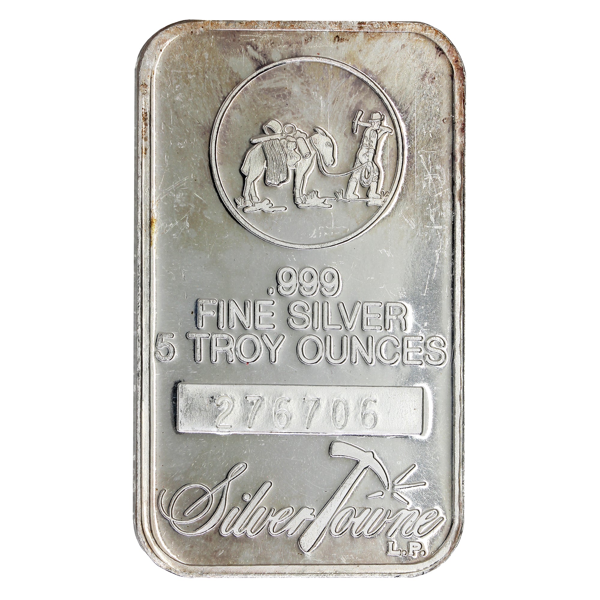 Silvertowne Mint Serialized Prospector 5oz .999 Silver Bar (No Tax) Toning