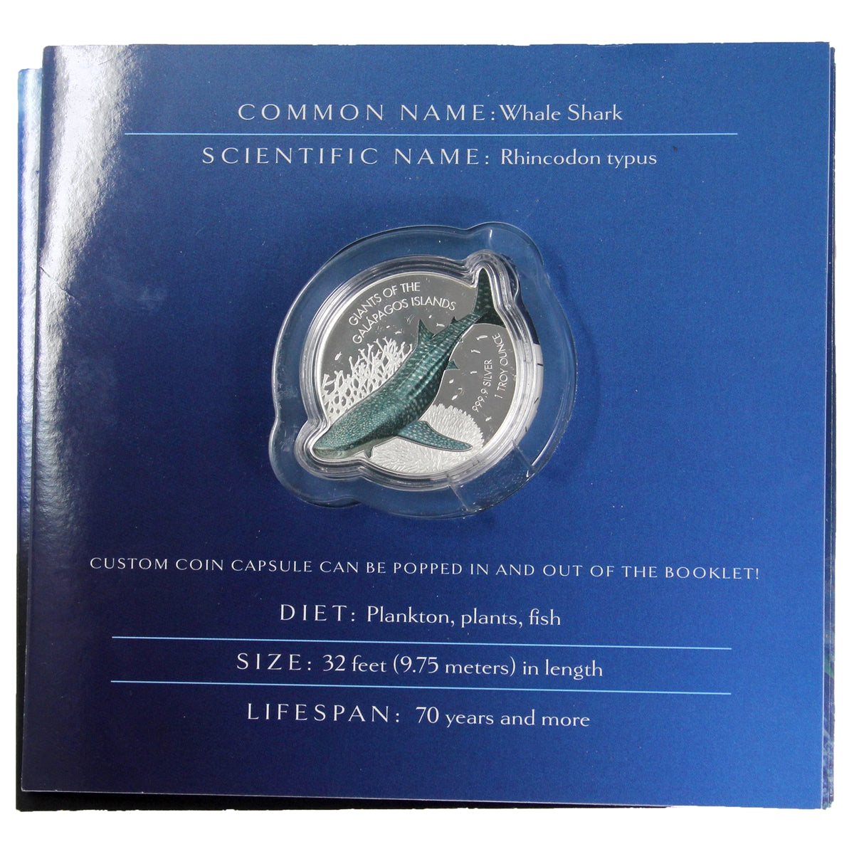 Solomon Islands 2021 Two Dollars Giants of the Galapagos Islands: Whale Shark .9999 Silver (No Tax) Light wear on folder. The folder incorporates an assay certificate from the PAMP mint in Switzerland.