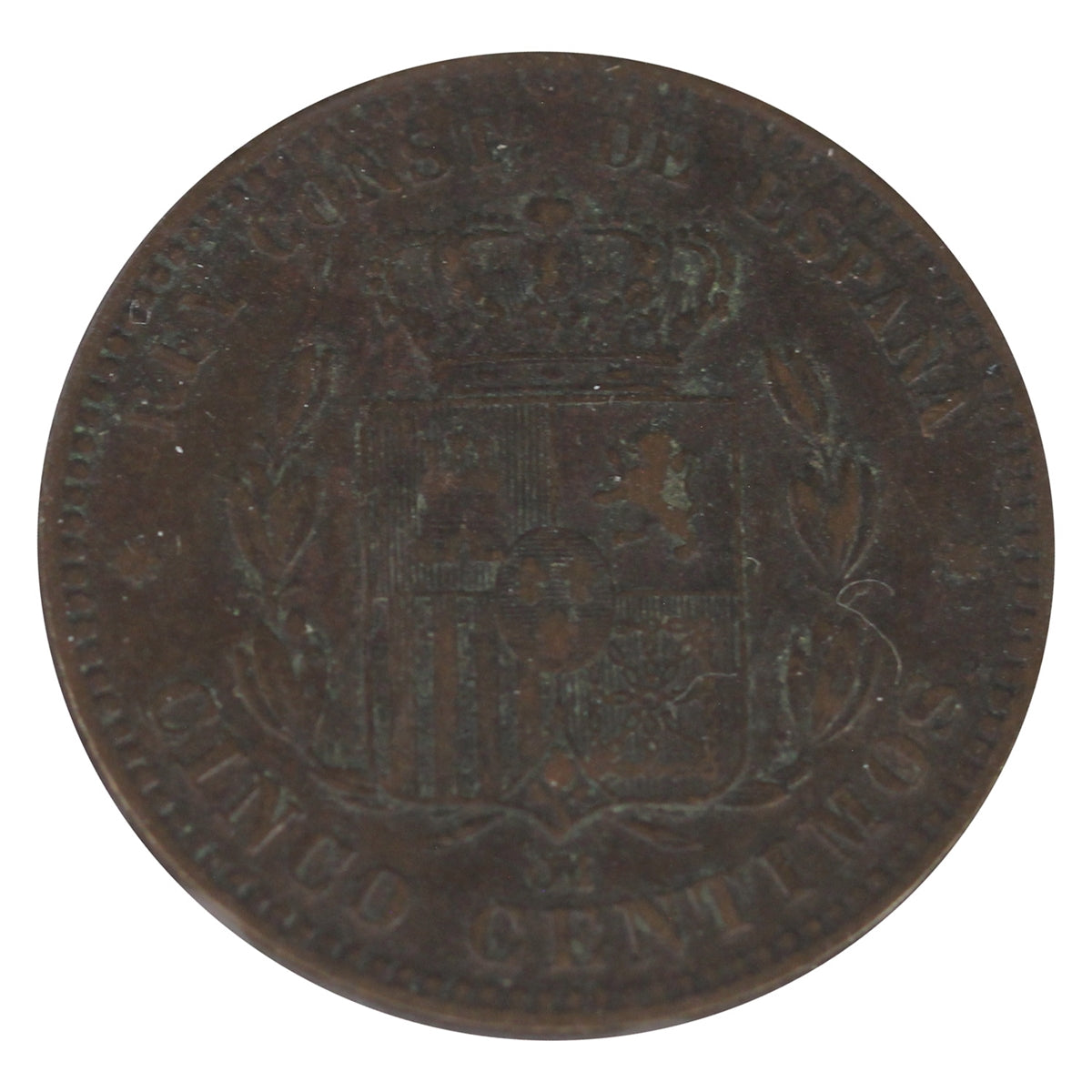 Spain 1877 OM 5 Centimos Almost Uncirculated (AU-50) $