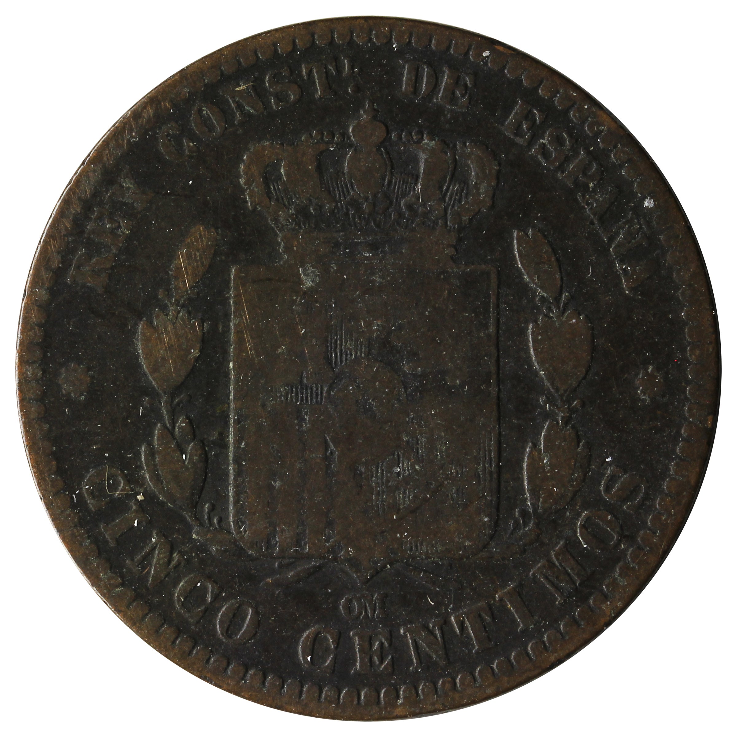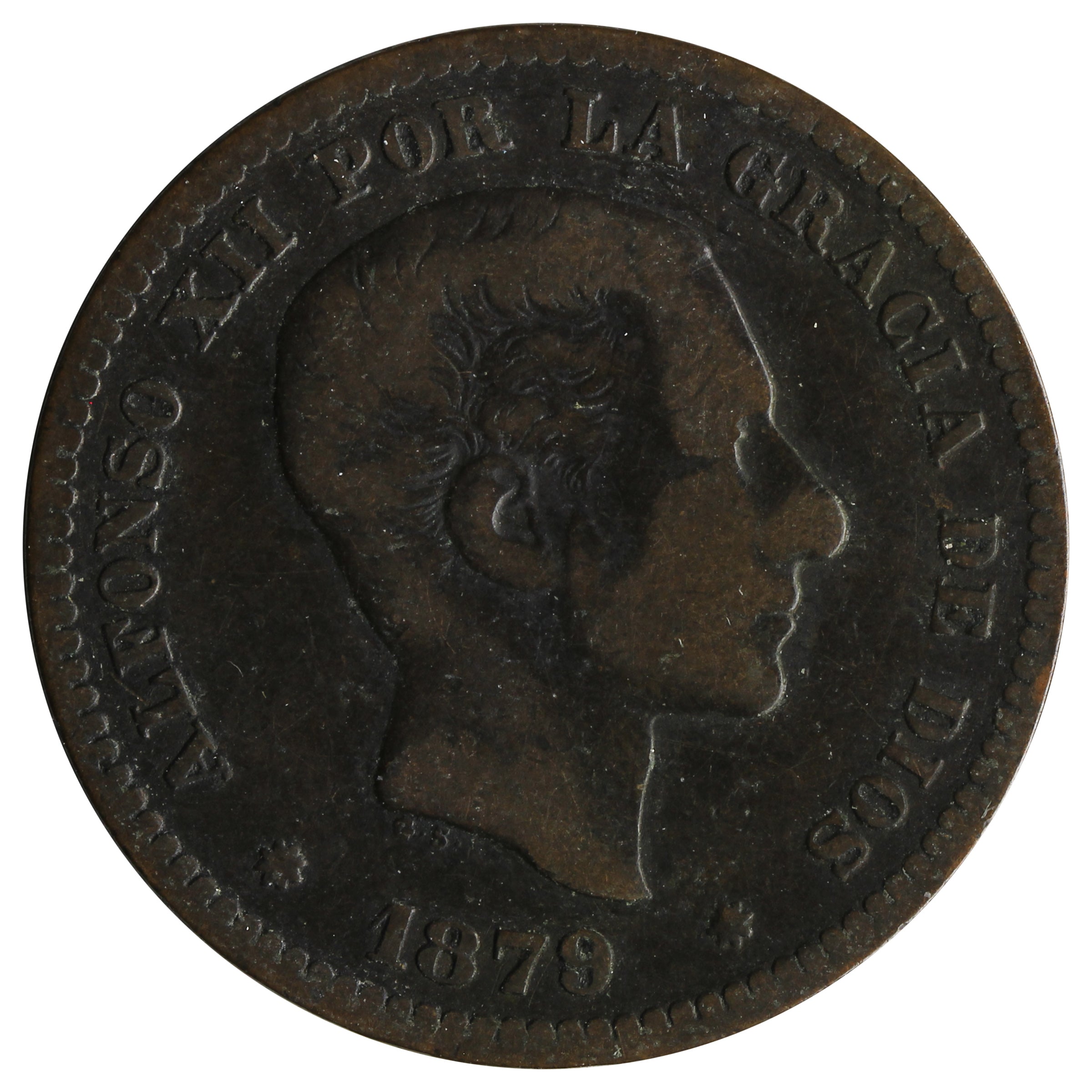 Spain 1879OM 5 Centimes VF-EF (VF-30)
