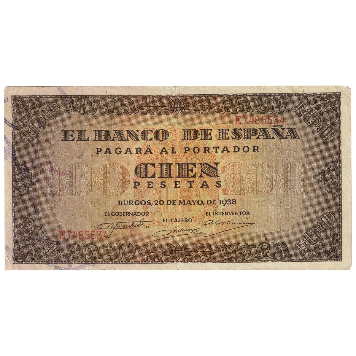 Spain 1938 100 Pesetas Note, Pick #113a, VF-EF