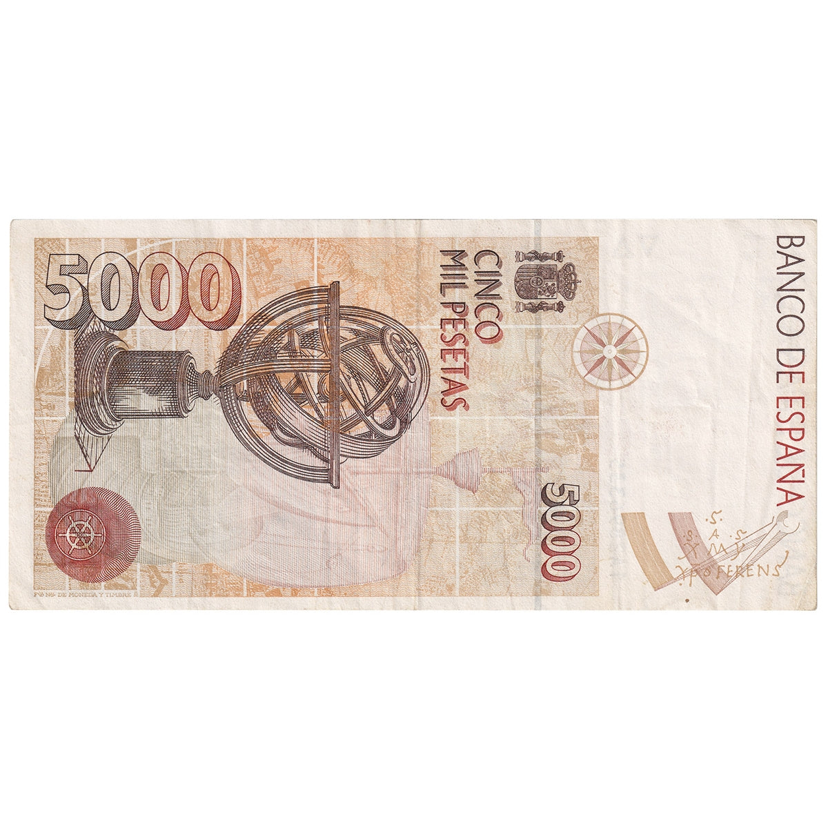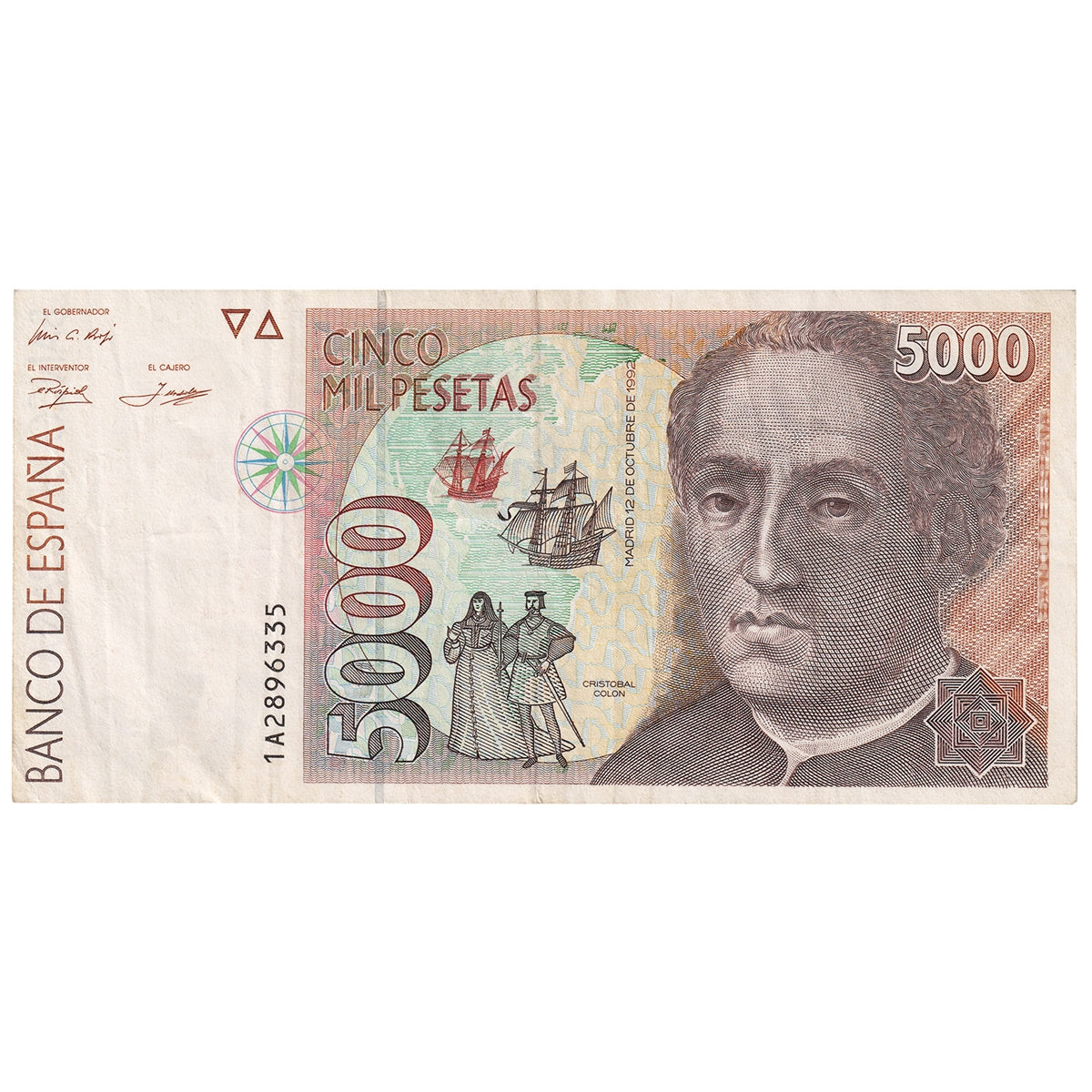 Spain 1992 5000 Pesetas Note, Pick #165, VF