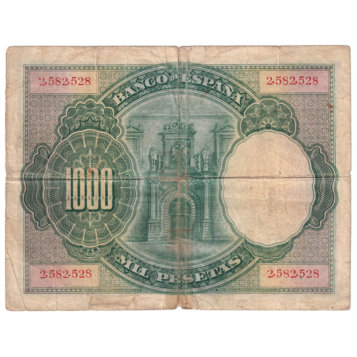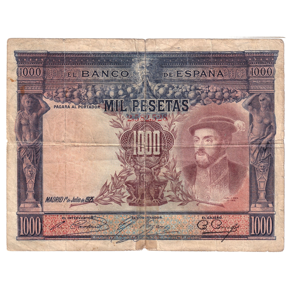 1925 Spain Paper Money 1000 Pesetas, F(dam'g)