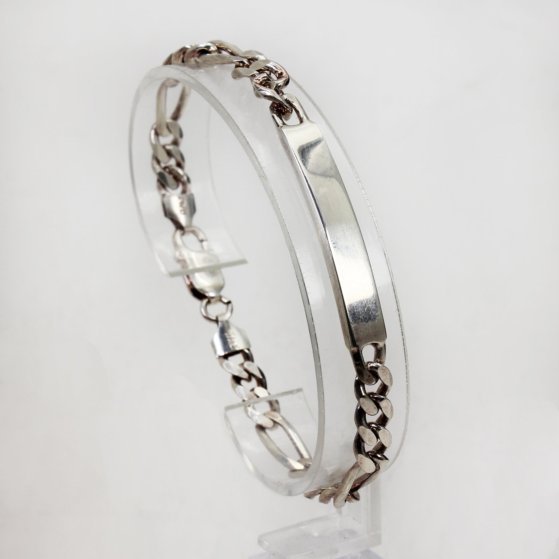 Sterling Silver Figaro Link Bracelet with Engravable Plate - 8 1/2"