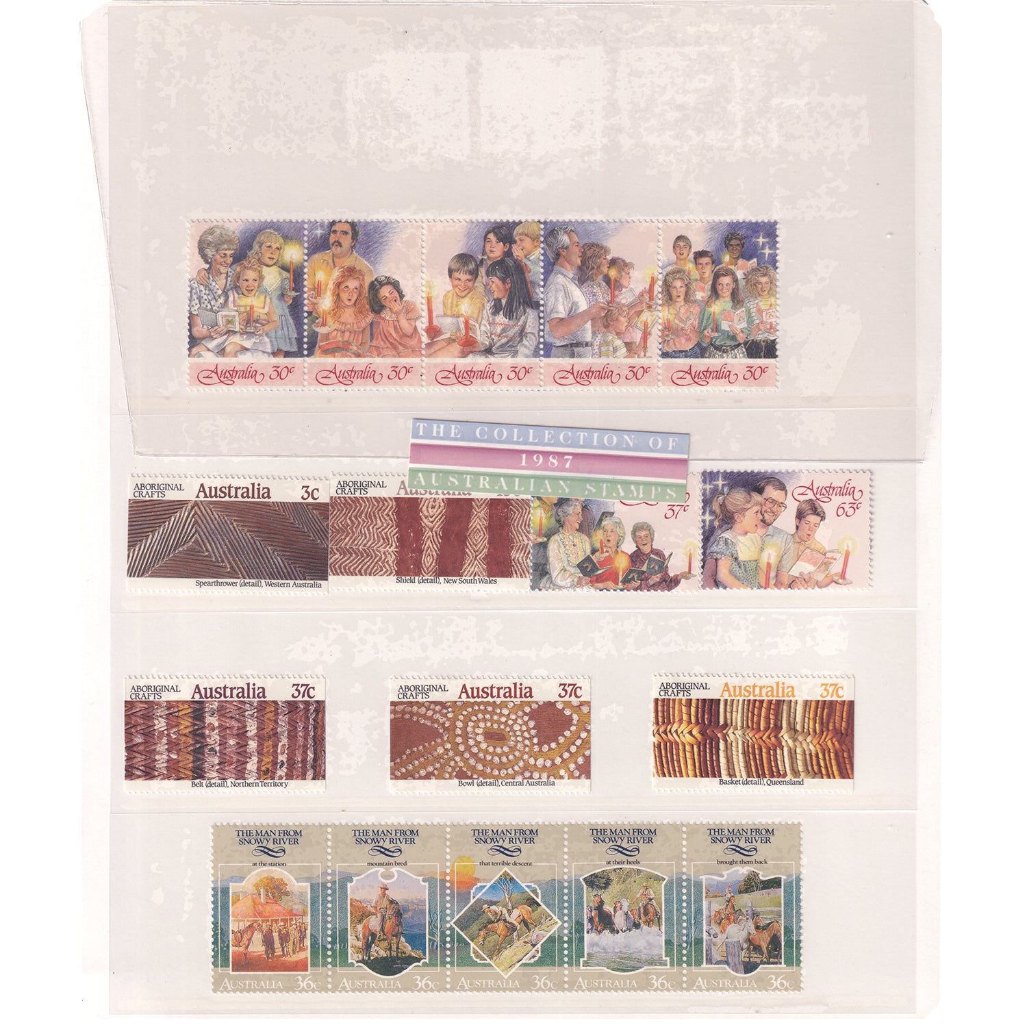 This lot features over 50 Australian stamps released in 1987, accompanied by a large book detailing the stamps and the story behind their release.