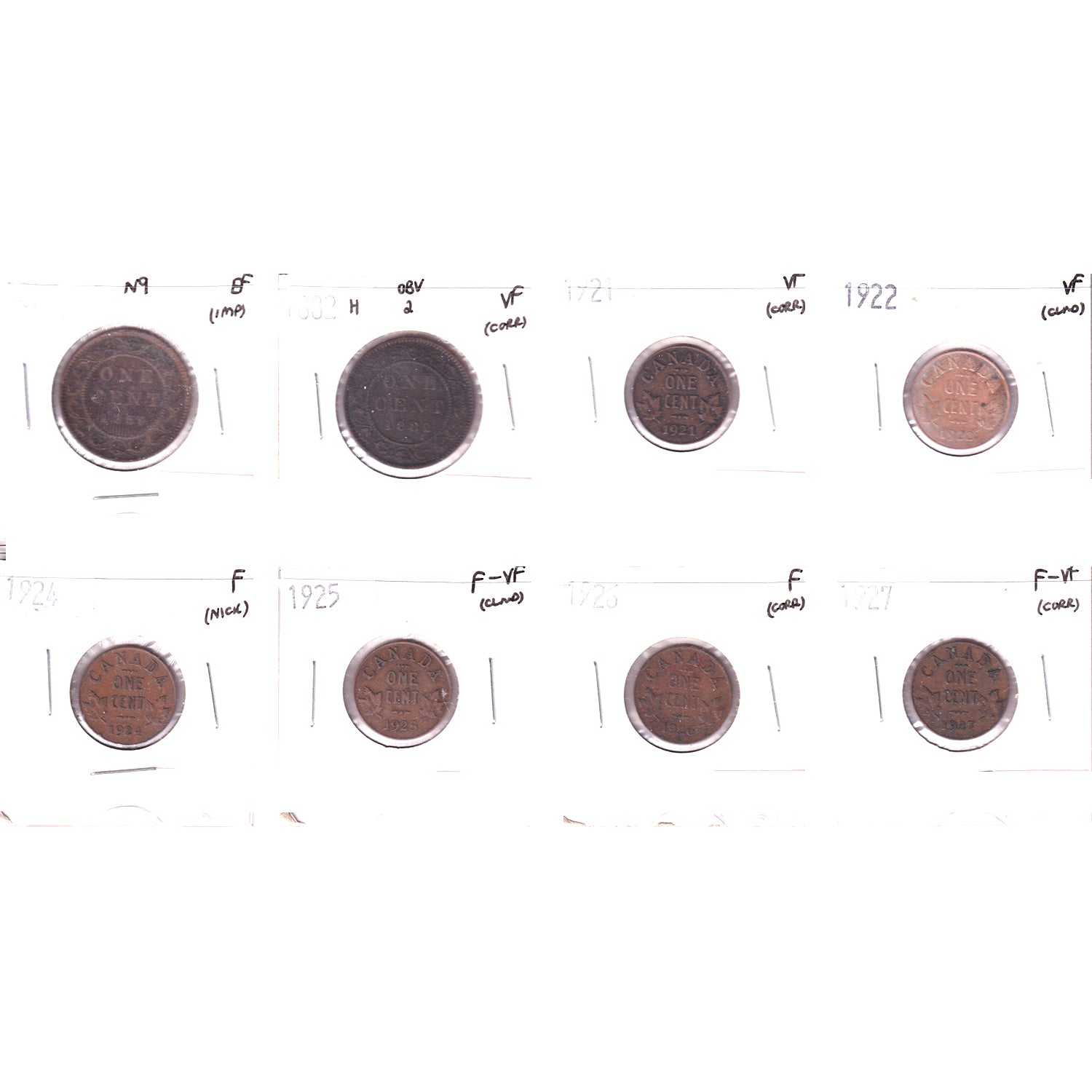 Lot of 8x 1859-1927 Canada 1-cent, F to EF, 8Pcs. (Impaired)