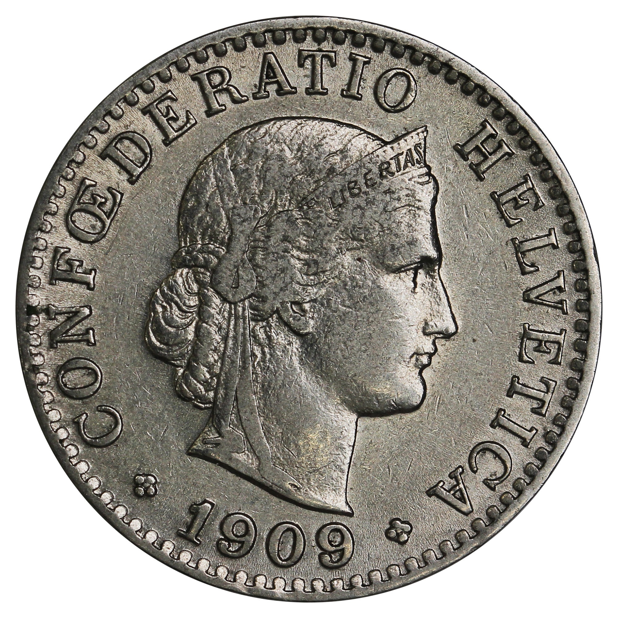 Switzerland 1909B 20 Rappen Almost Uncirculated (AU-50)