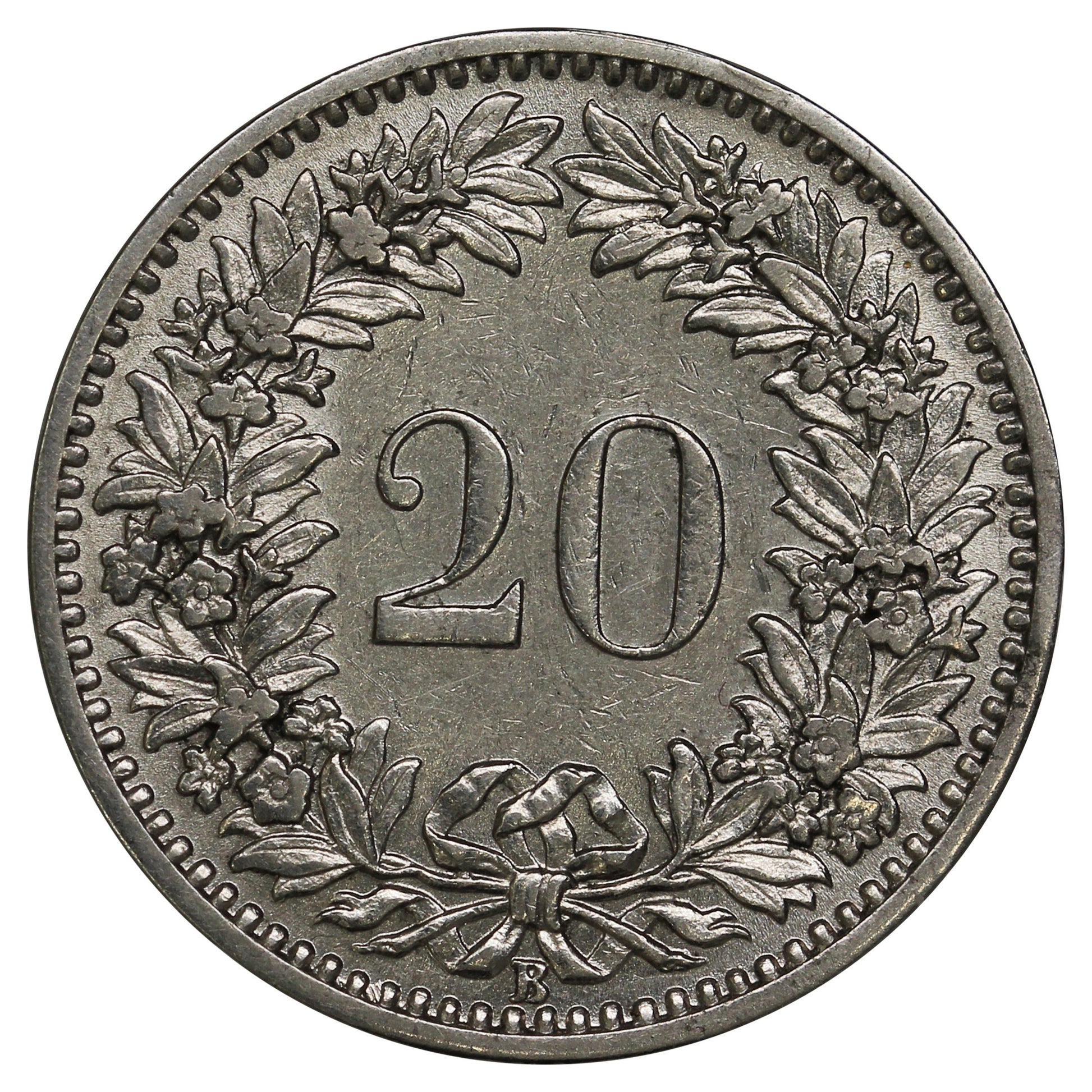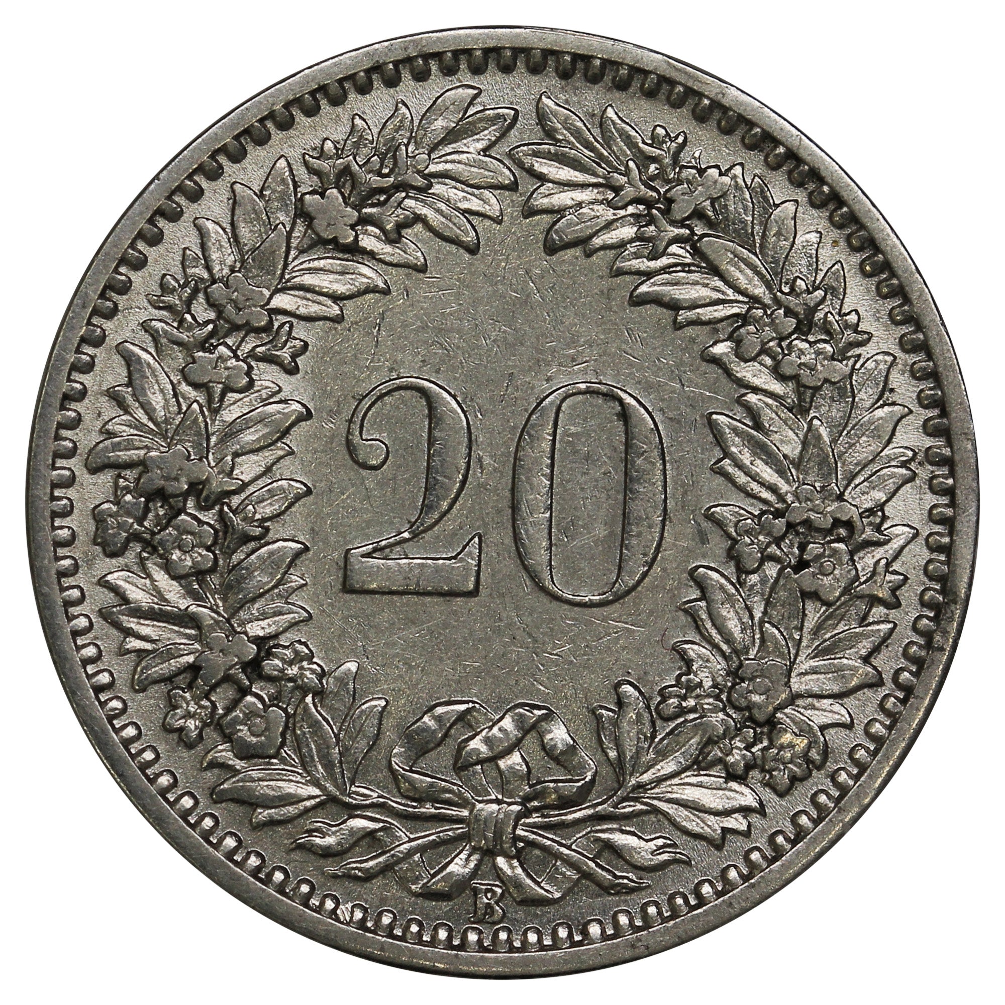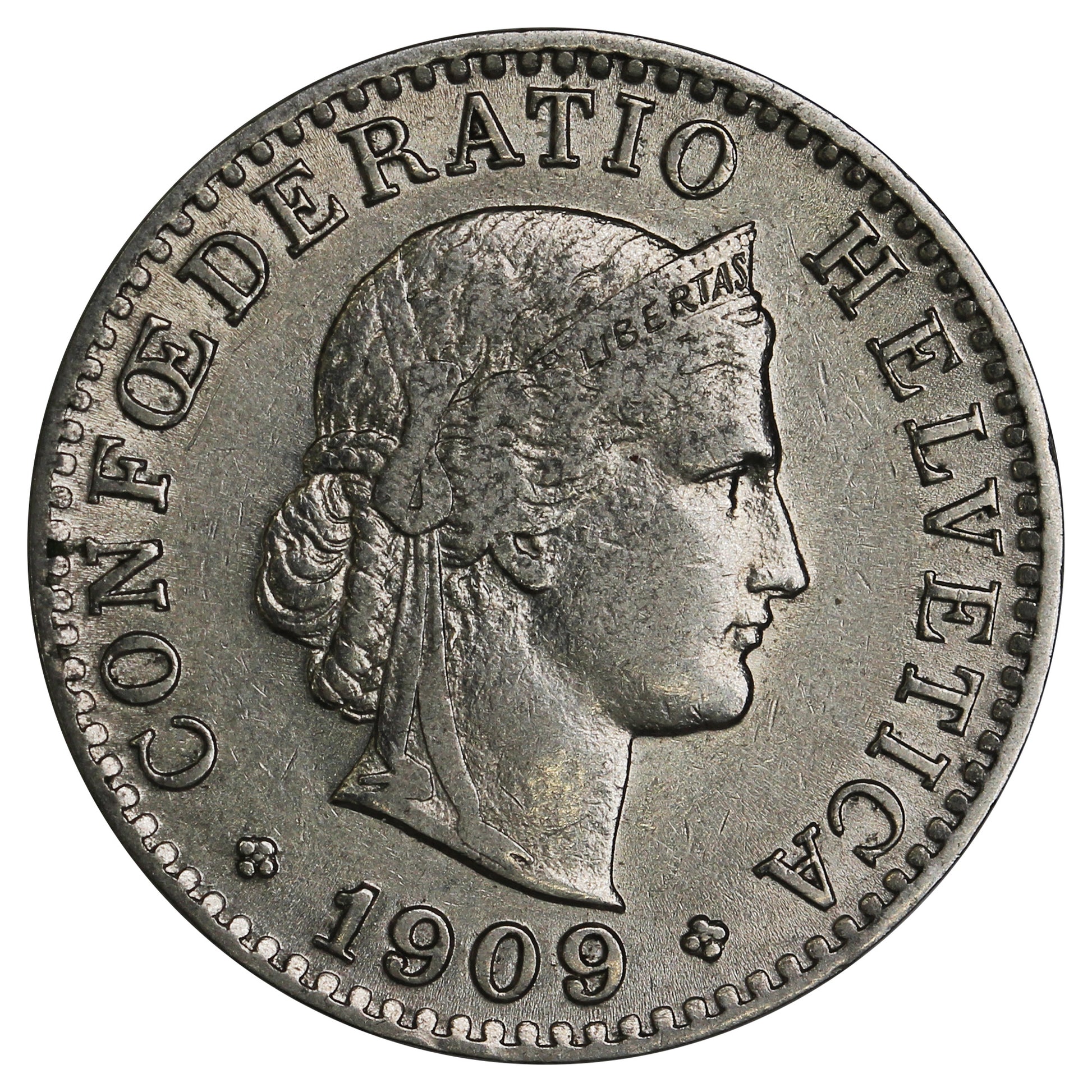 Switzerland 1909B 20 Rappen Almost Uncirculated (AU50)