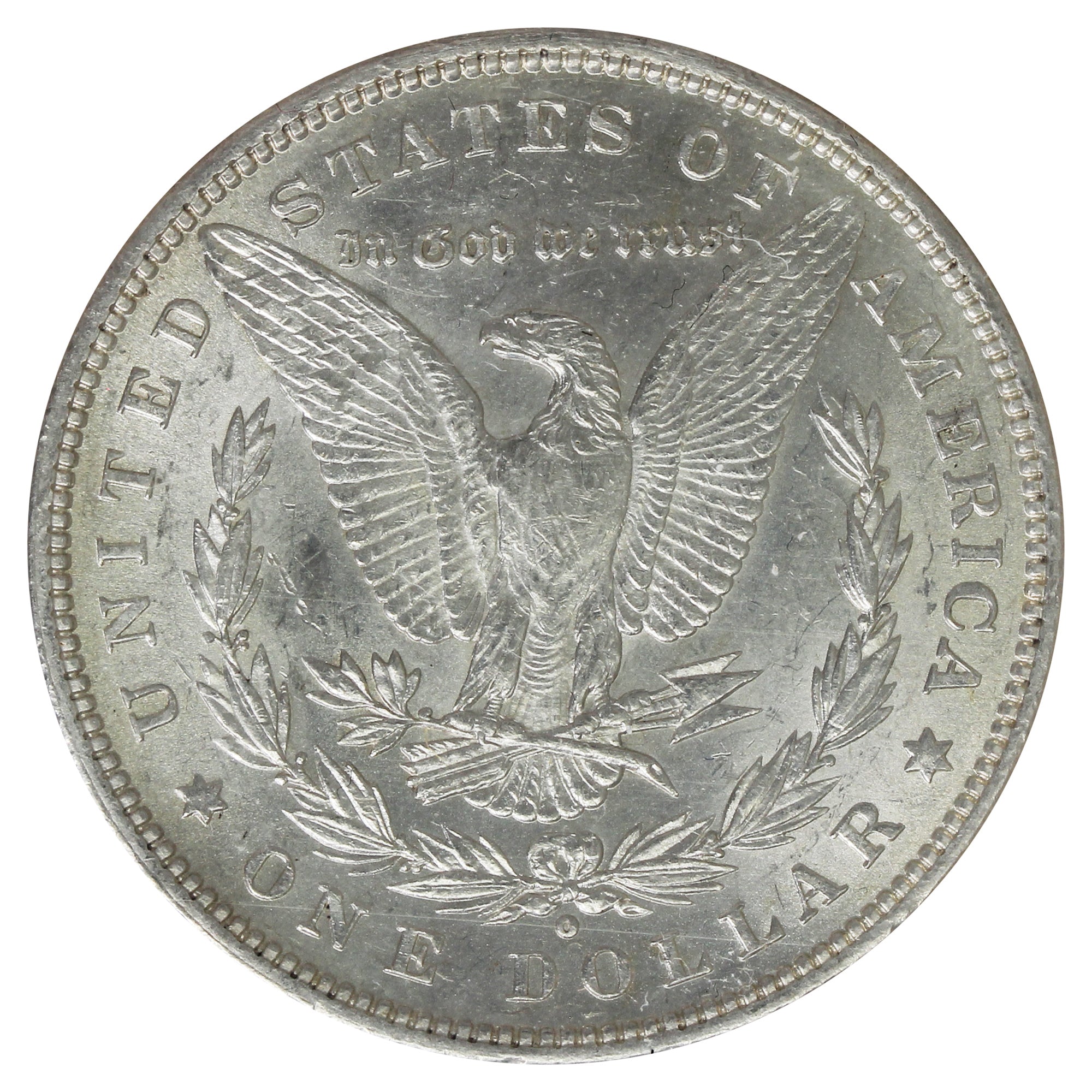 Reverse: An eagle holding arrows and an olive branch in it's talons within a wreath, motto "IN GOD WE TRUST" above, with the country name around, and denomination below. The mintmark can be found between the wreath's bow and the "DO" in Dollar.