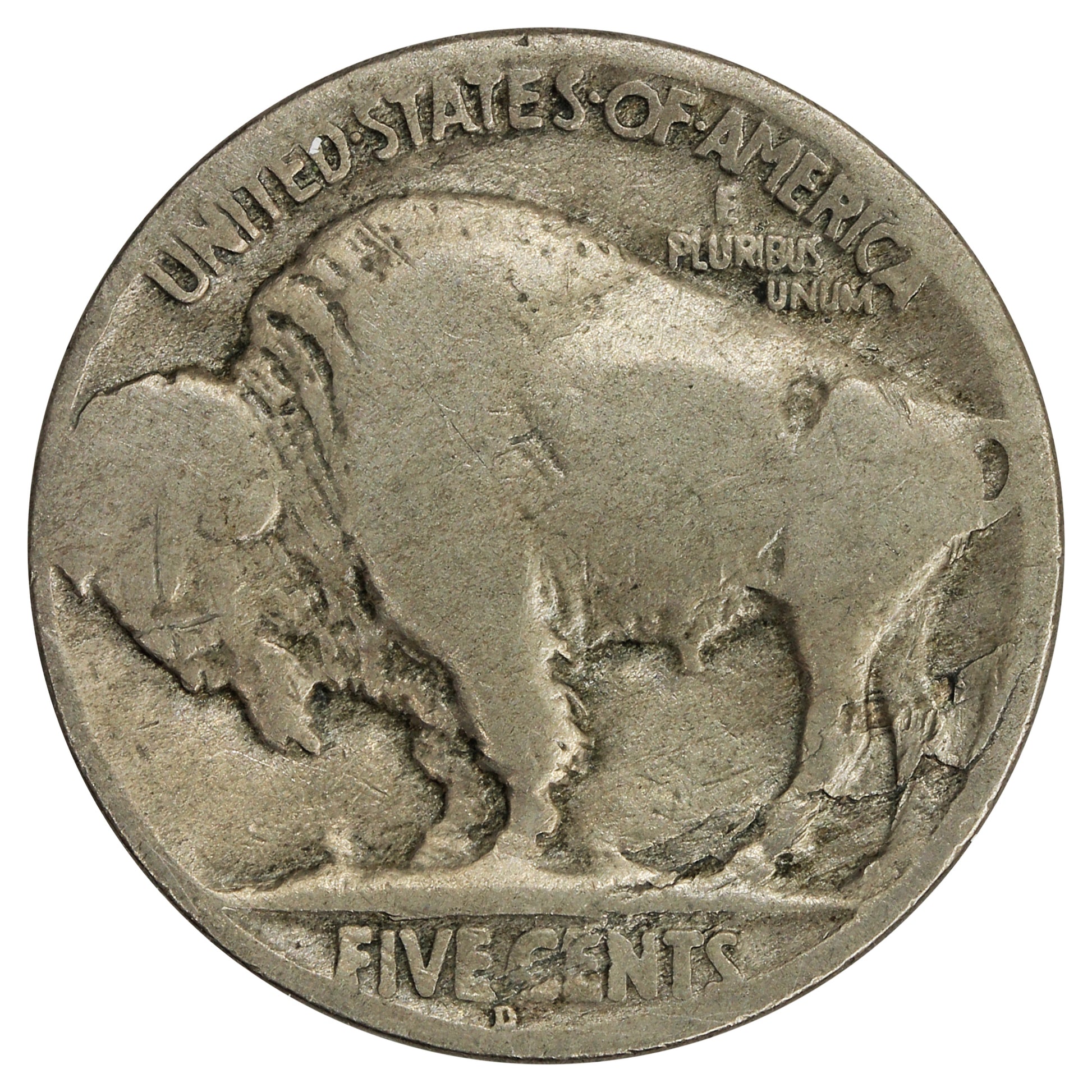 Reverse: A Buffalo, with country name above and denomination on raised ground below. A mintmark would be found below the "E C" of "FIVE CENTS".