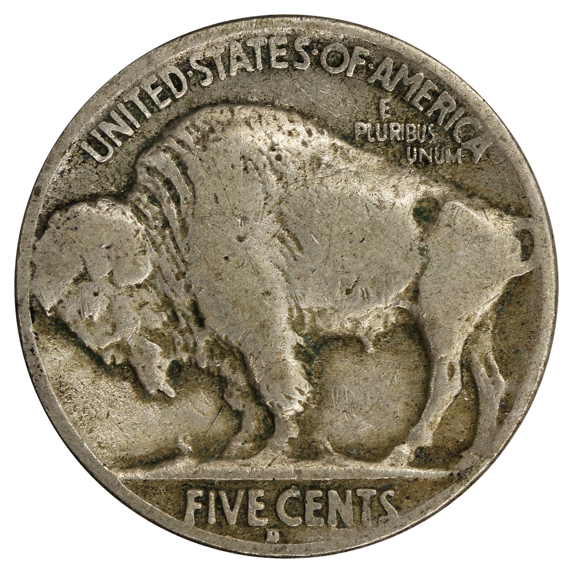 Reverse: A Buffalo, with country name above and denomination on raised ground below. A mintmark would be found below the "E C" of "FIVE CENTS".