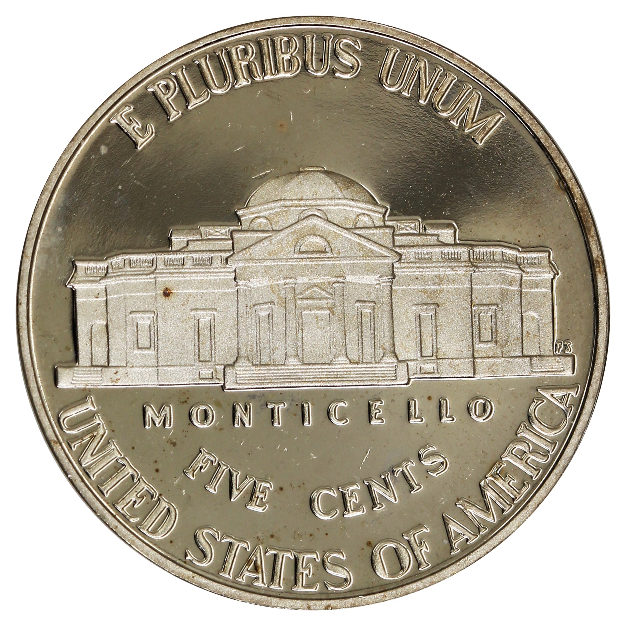 Reverse: Artist's representation of Monticello, Jefferson's home in Charlottesville, Virginia, with the denomination below, and the legend around.