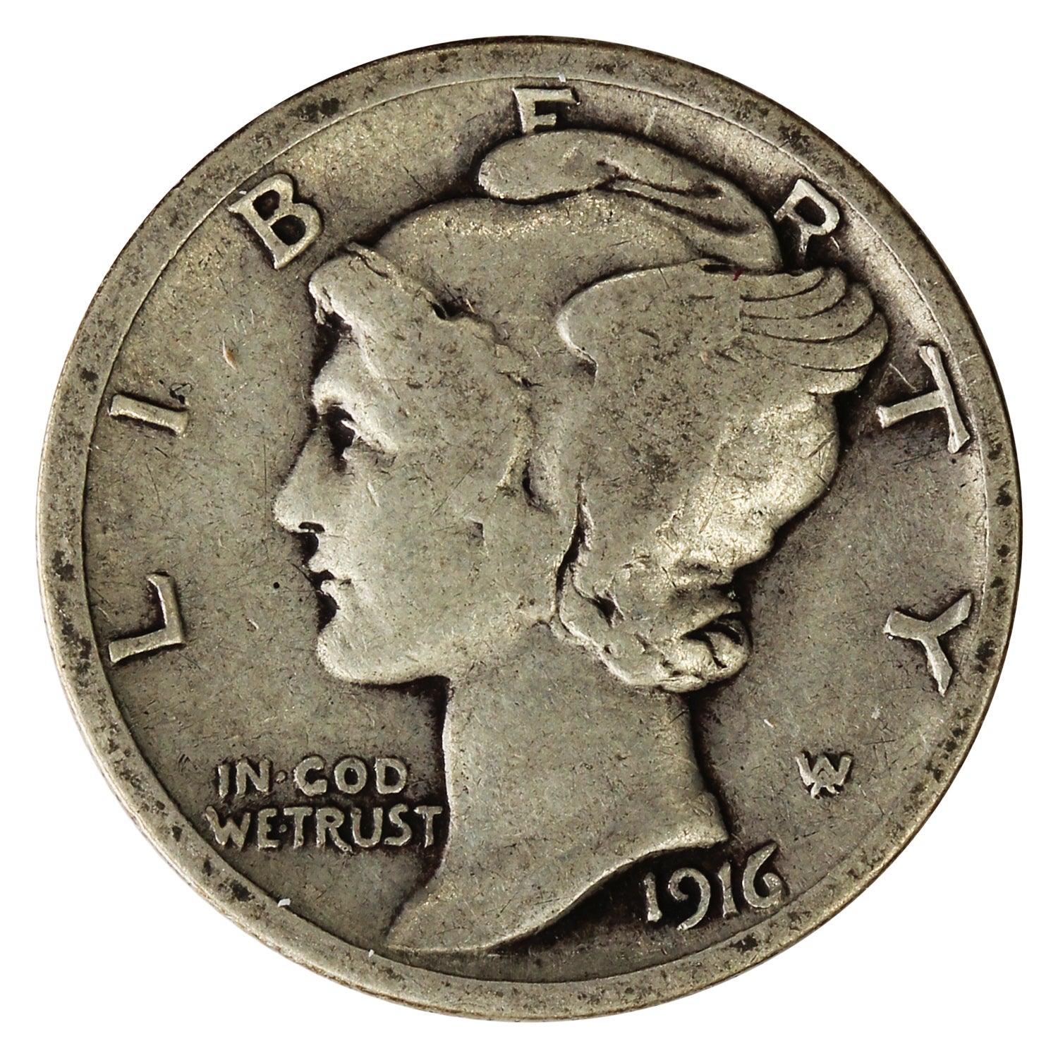 1916 S USA Mercury Dime VG-F (VG10)