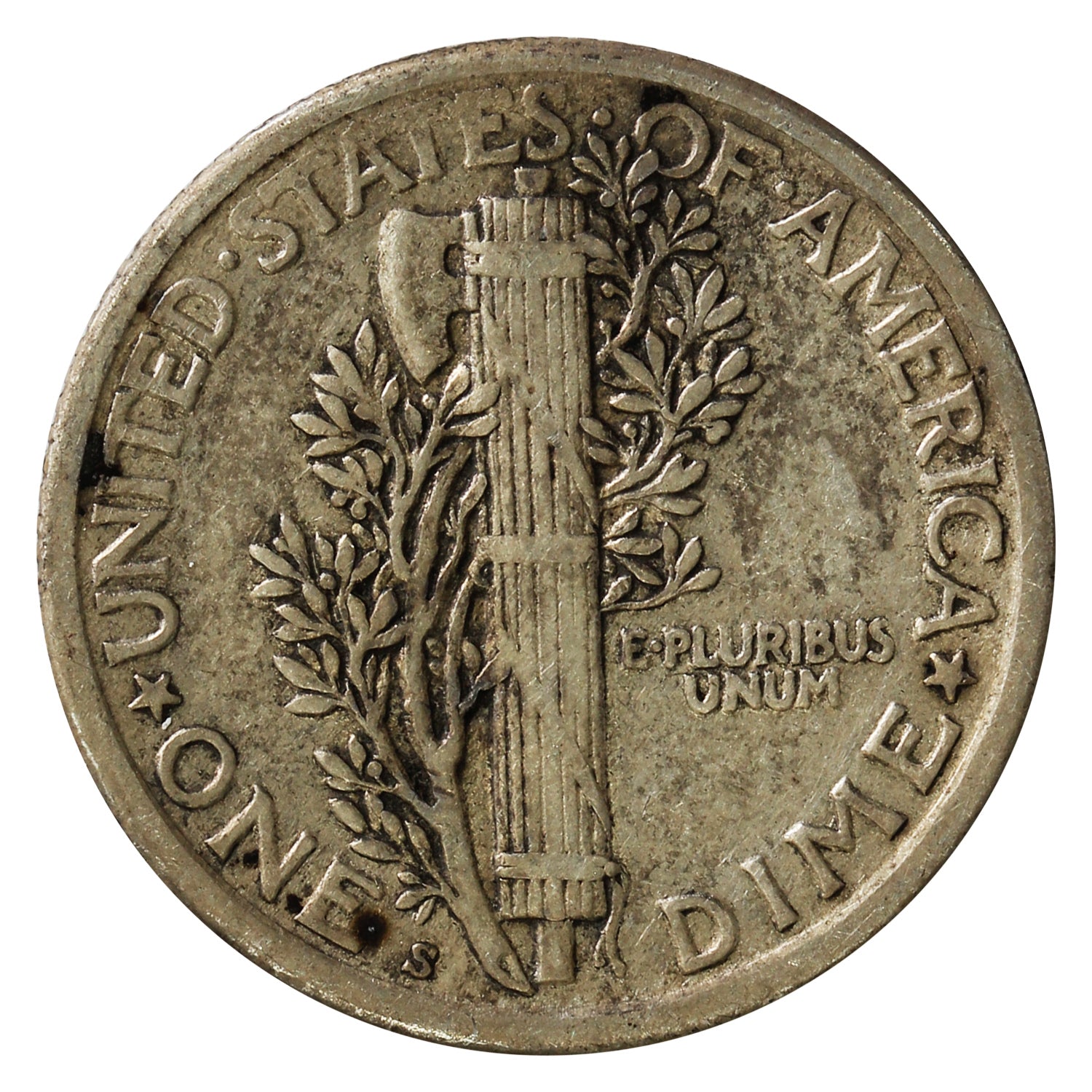 Reverse: A Roman fasces (an ax tied to a bundle of rods) mixed with an olive branch, representing the United States preparedness for war but also its desire for peace, with the denominatino below and the country name curving above; the mint mark (if present) is located just after the "ONE".