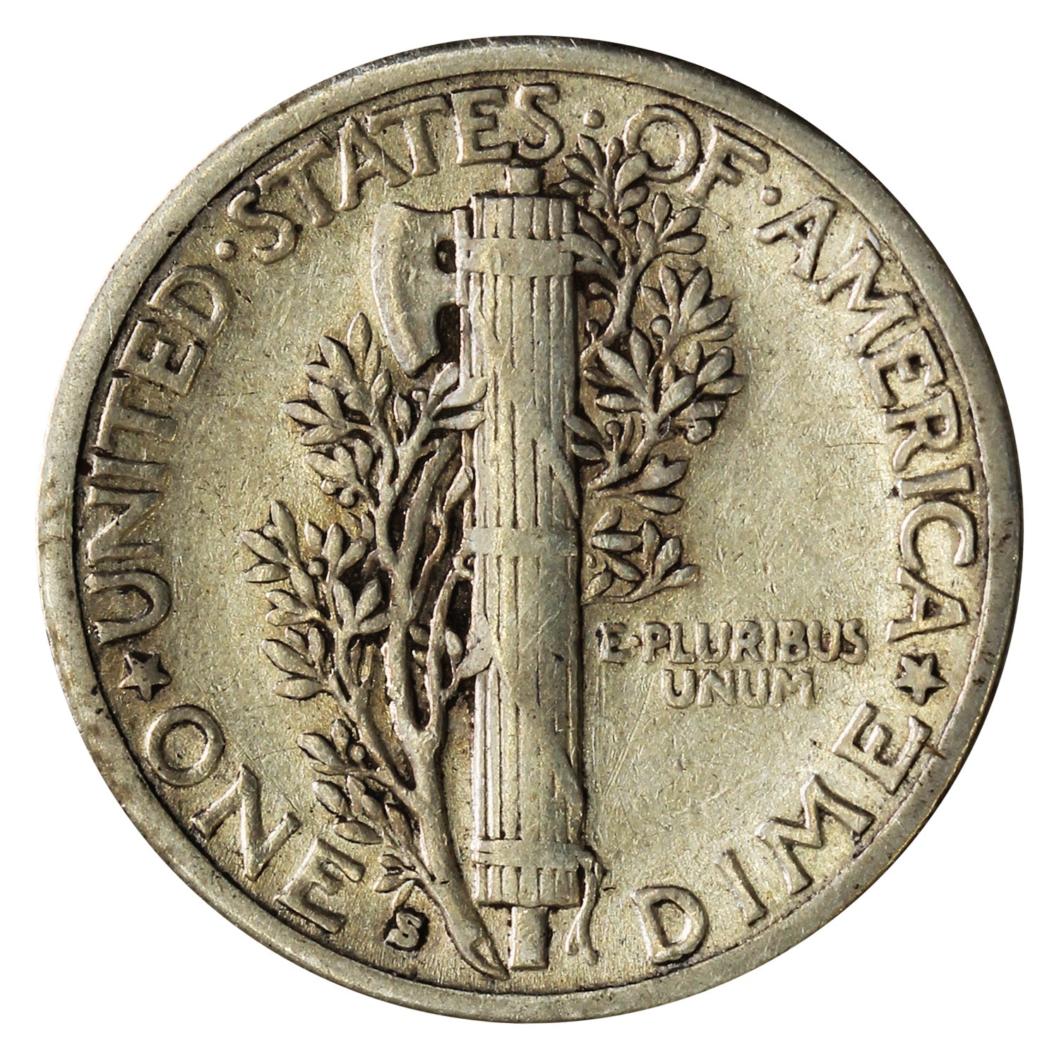 Reverse: A fasces (bound bundle of sticks or rods into which an axe is inserted or tied to) with an olive branch, symbolizing that the United States is both prepared for war and also desires peace. Motto "E PLURIBUS UNUM" is to the right, country name surrounds, and denomination is below. The mintmark can be found to the right of "ONE".
